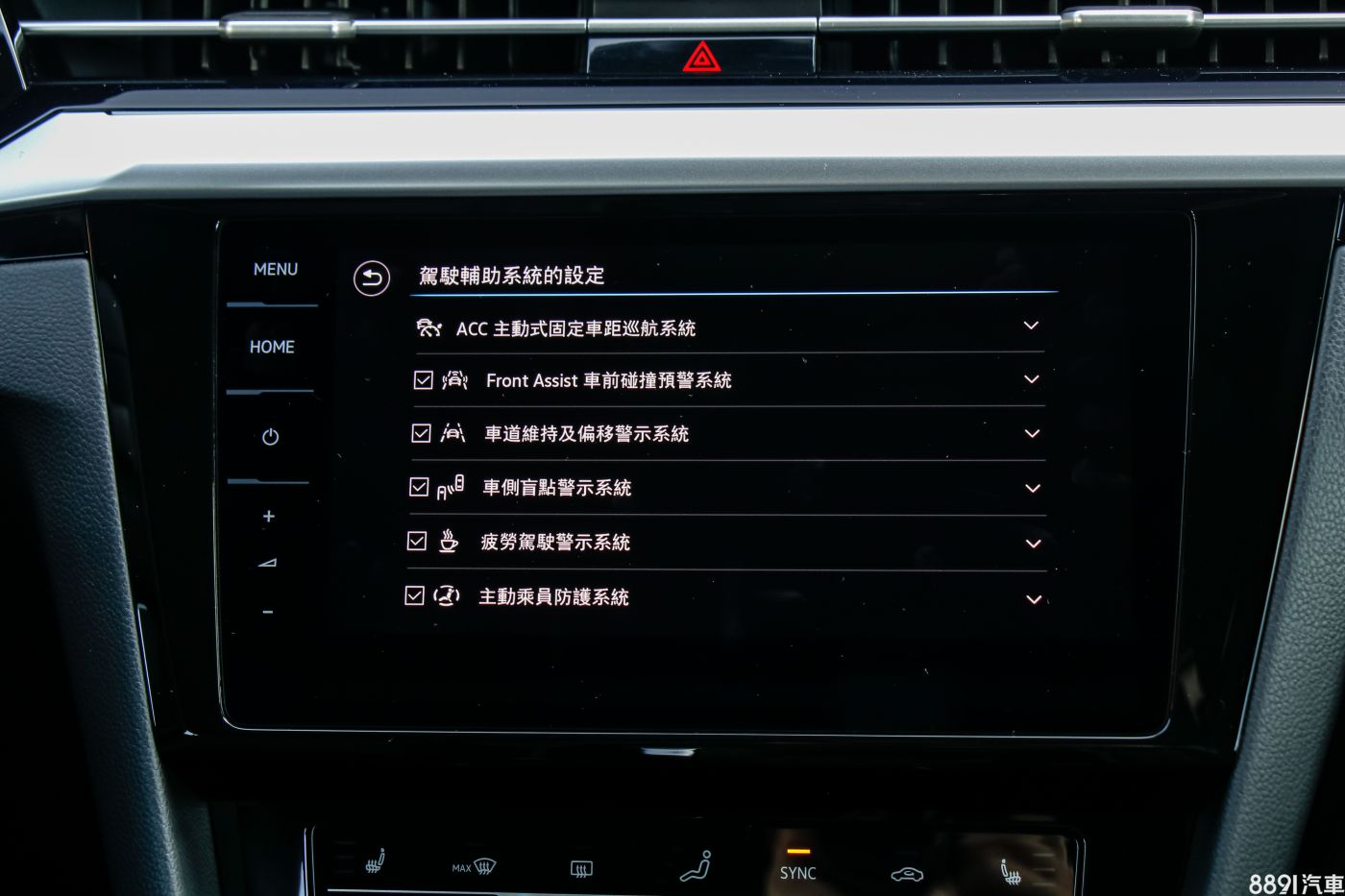 三區恆溫空調採用全觸控面板,其中的風量與溫度可用按壓或左右滑移觸控的方式進行調整,多了科技感,只是比起傳統按鍵,行駛時需要轉移視線操作。