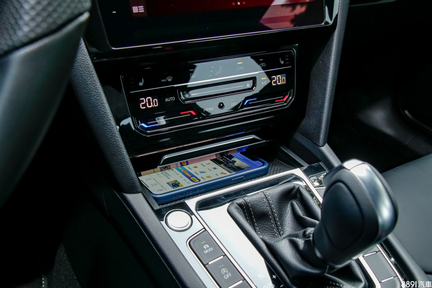 無線充電裝置位於空調下方,如果是使用iPhone,搭配無線Apple CarPlay,便實現真正的無線環境,但這位置在拿取手機稍嫌不便,尤其是P檔的狀態下。