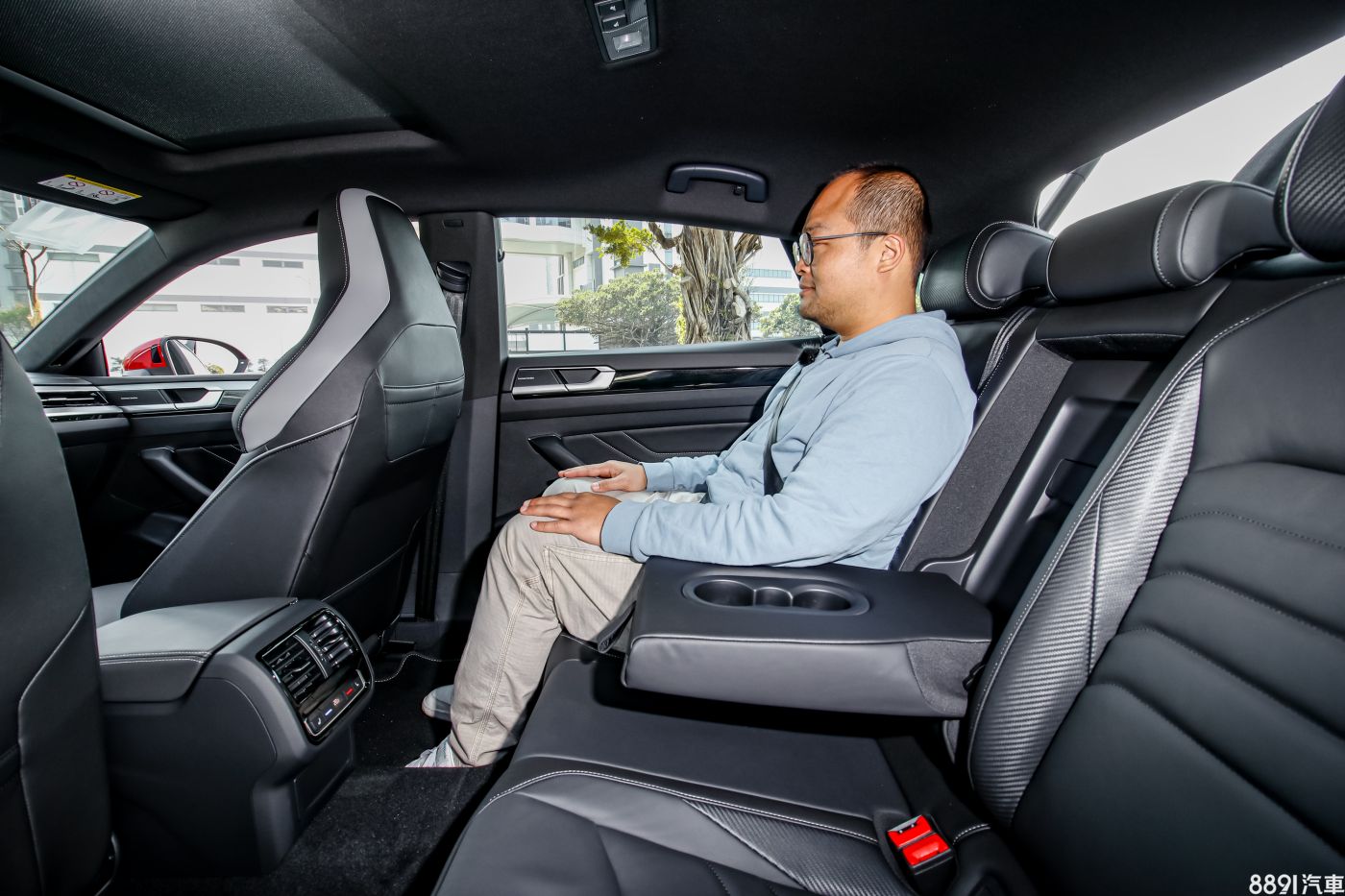 身高約171cm、壯碩身形的成人入座,仍有充裕的膝部空間,椅墊長度也相當夠,椅背角度也不會過於挺直,但也為了追求低斜的車頂曲線,頭部就多了壓迫感,車窗面積也比多數中型房車小一些。