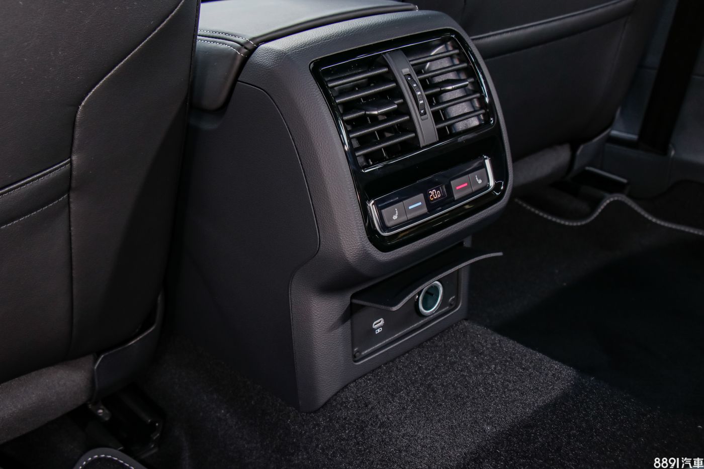 後座空調出風口下方具備溫控面板與兩側座椅加熱功能,並附上一組USB Type-C以及12V插座。