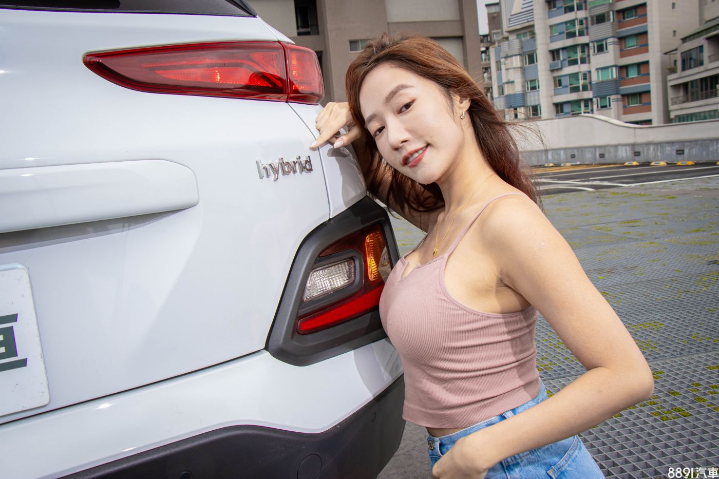 如果仔細端詳,可以發現分離式的尾燈也呼應車頭設計,同樣配合大面積的防刮材質,讓身為都會跨界休旅的Kona多一分粗曠感。 Kona全車系都是隱藏式排氣管設計,不過從右方的Hybrid銘牌還是能快速辨別其身分。