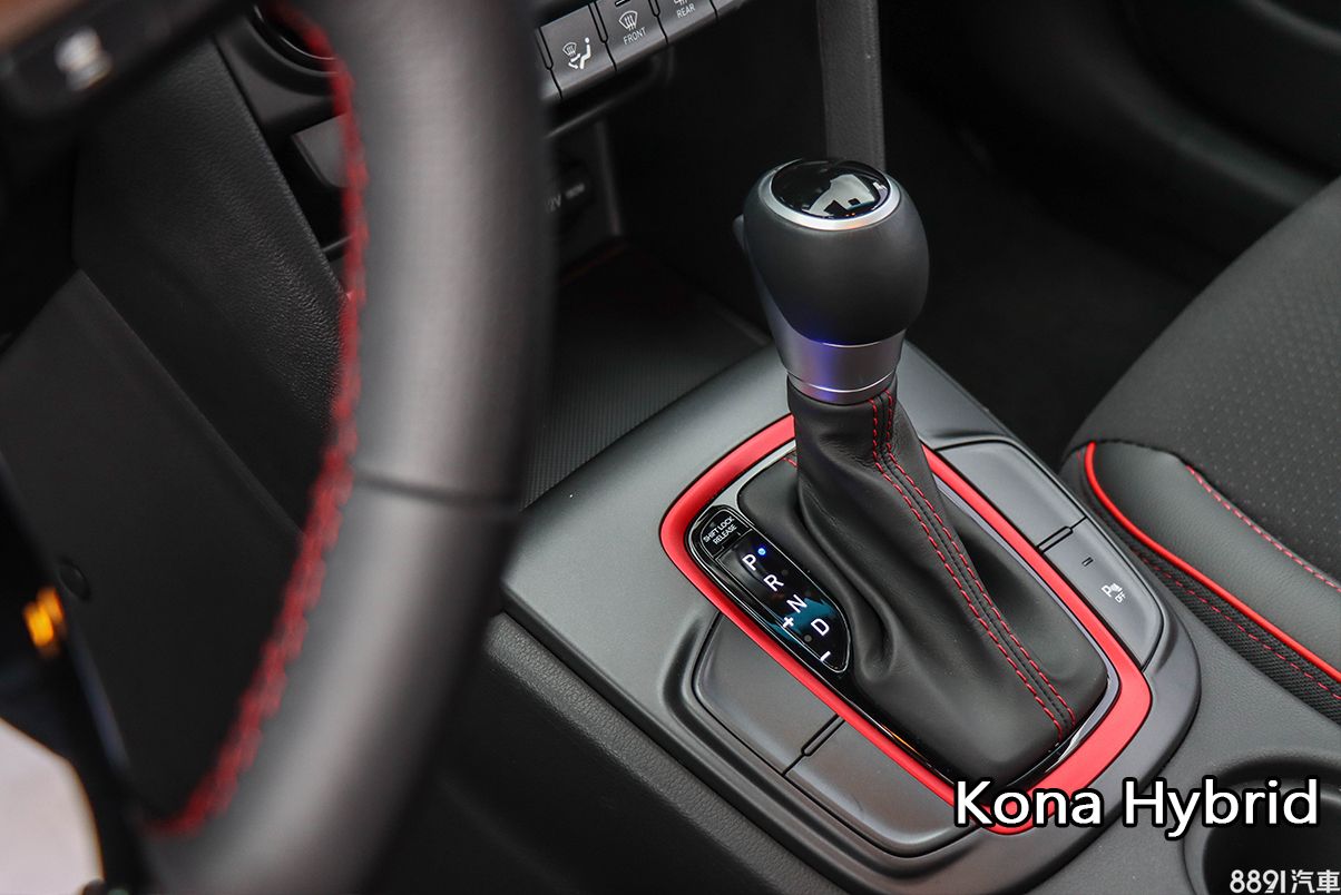 6速DCT雙離合器自手排變速箱,強調多一分自主性及駕馭樂趣,切入手自排換檔時會進入Sport模式,D檔之下則為Eco,並且在方向盤後方附有換檔撥片。 Kona Hybrid身為小休旅,乘坐重心也比IONIQ Hybrid來的高,即使是身材嬌小的女性,也有無壓力的駕車視野,用上紅色安全帶,看起來也更帥勁有型。