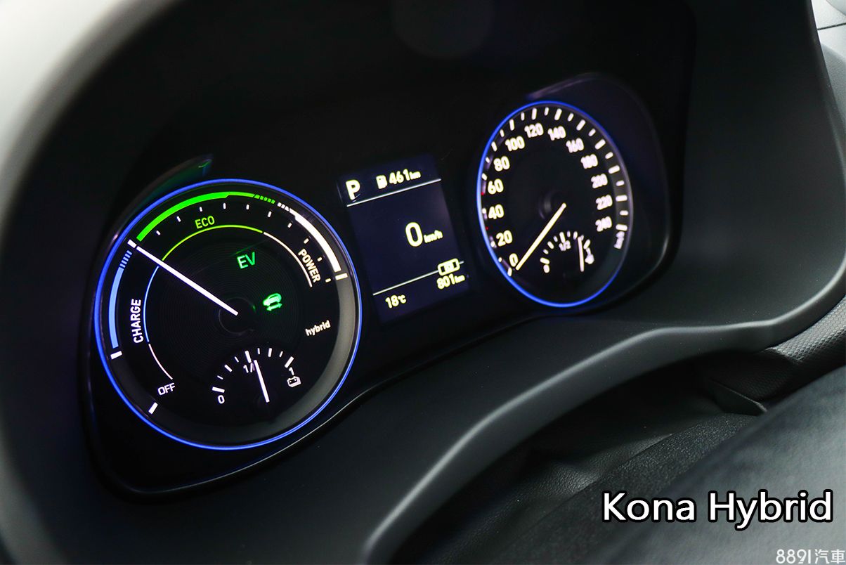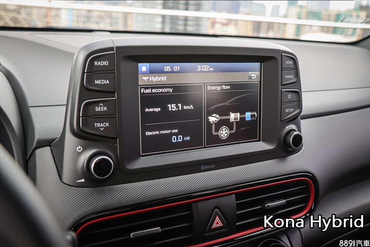 雖然兩者都是油電設定,主張節能動力,但Hyundai仍賦予截然不同的內裝風格。Kona Hybrid偏向個性及運動化,配有Red-Line車室套件、夜幕套件及黑頂篷,於安全帶、飾條、出風口和座椅縫線等處都採紅色處理,強化動感氛圍。 儀錶板採用Hybrid專屬式樣,左側轉速錶更改為系統出力狀態,中央資訊幕也多了動能流向監控。行駛時若進入純電驅動狀態,儀錶內的EV燈號則會亮起。