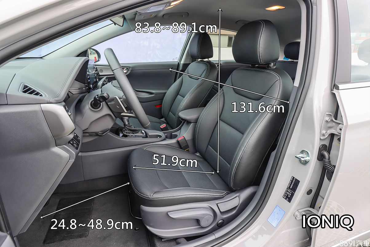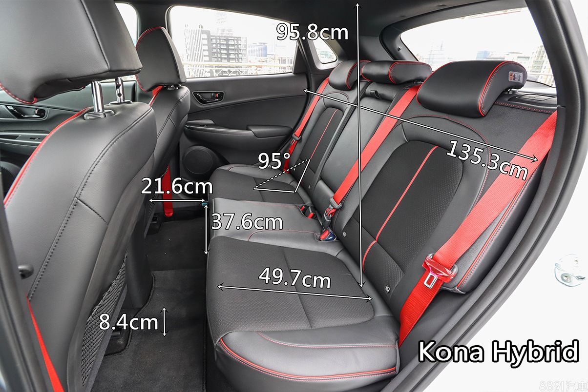 IONIQ Hybrid為考慮車體流線,在B柱後採用斜背設計,此條件下不免略犧牲頭部空間,但靠著優異的後座膝部距離,以及淺色系車頂裝潢,在體感上來說反而勝過Kona Hybrid。在人體工學上兩車表現都不錯,椅背角度適中、椅面長度也夠,舒適度表現相當。