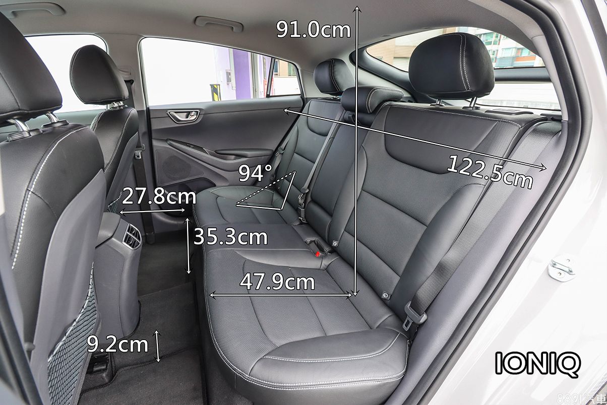 歸功於較大的膝部空間、淺色車頂設計,讓IONIQ Hybrid後座空間開闊又明亮,多出後座冷氣出風口,也讓冷房效果更佳。