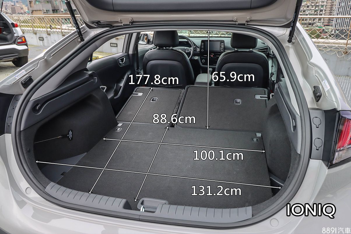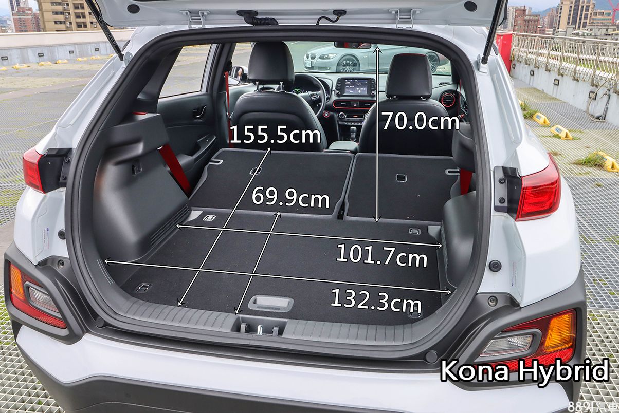 兩車的鋰電池組均安置於後座下方,因此不影響載物機能,IONIQ Hybrid車格畢竟是中型掀背,空間深度比起CUV格局的Kona Hybrid更優異,寬度、高度表現則兩者相彷。