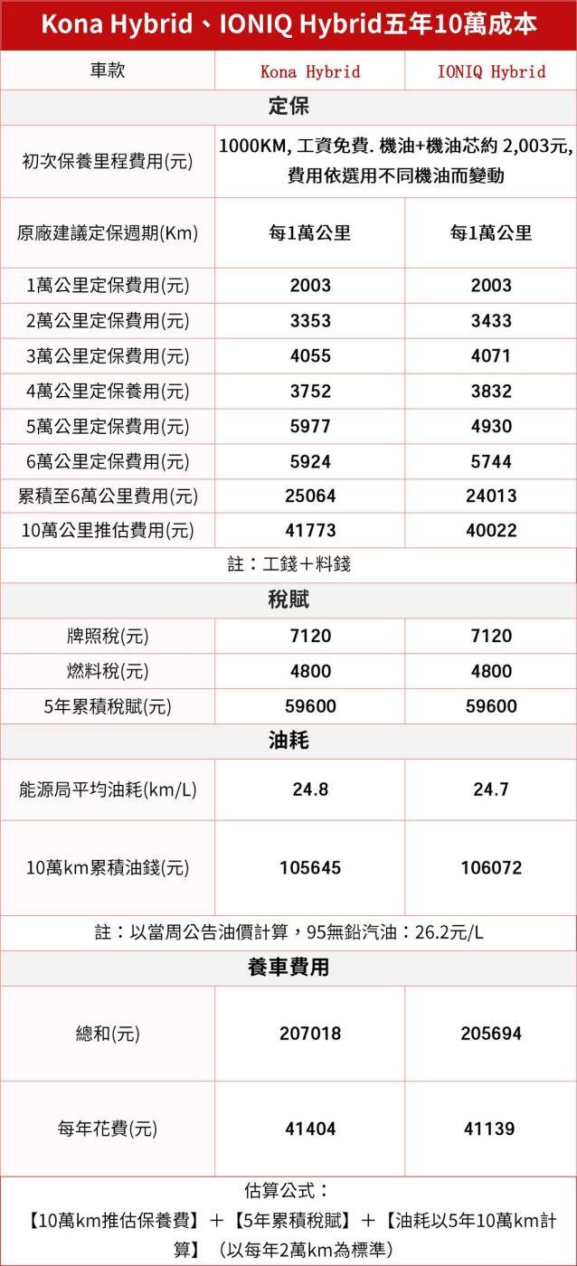 兩車的5年10萬公里估算成本非常接近,觀察其中,可發現到不論是原廠零件價格或每期定保費用都並不算貴,和一般平價國產品牌差不多,如果再納入Hybrid系統長期行駛的節能效果,整體的養車成本低於傳統燃油車款,另外在消費者關心的鋰電池部分,原廠訂出8年不限里程保固,已經是高於業界標準的條件。