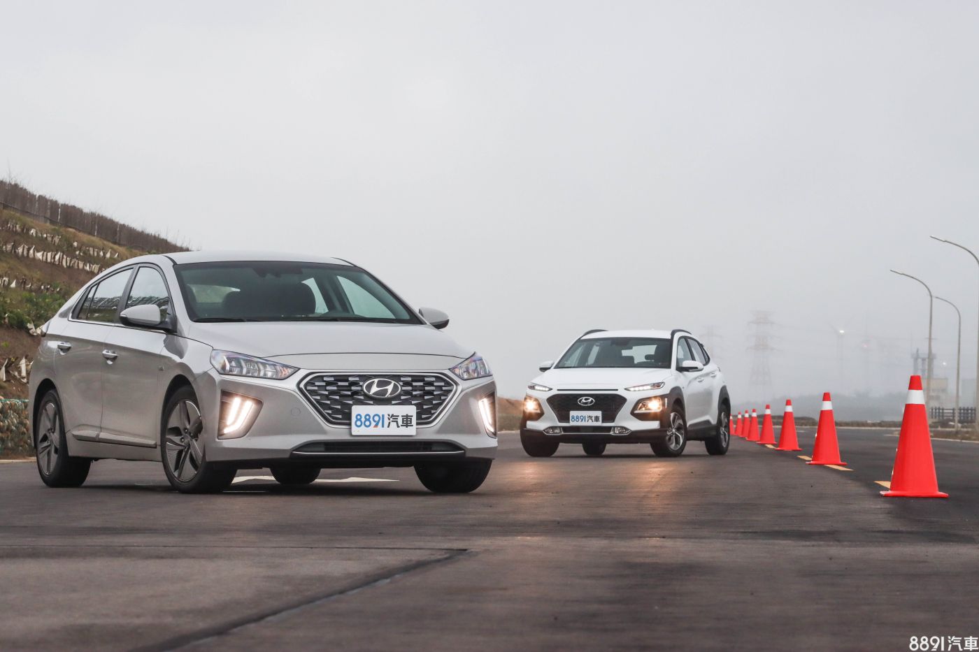 該系統具備四段跟車車距以及三段靈敏度調整,實際體驗後,預設Normal狀態下,低速跟車加減速作動時機稍微早一些,建議設定在Slow會顯得更柔順,而靜止後,只要輕踩油門就能再自動跟上前車,而IONIQ的LFA車道維持輔助系統的修正表現平穩,偵測標線的即時性足夠,不論市區塞車或長途高速行駛都有實際降低駕駛負擔的效果。 有了節能誰說就得犧牲操駕樂趣,Kona Hybrid與IONIQ Hybrid向來便在操控表現擁有高度評價,儘管車身形式略有差異,但懸吊方面兩車均採用前麥花臣、後多連桿結構,後獨立懸吊設定兼顧舒適與穩定性。而為了驗證兩者操控實力,我們特別擺設繞錐陣仗進行實際體驗,看看在固定的場地規範下,兩車的操控表現有何差異?