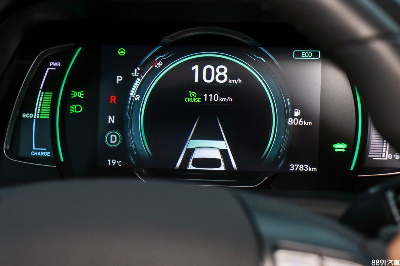IONIQ Hybrid貴為品牌電能精神指標,內裝給人的是內斂高檔的感覺,小改款後採用銀色飾條,以及8吋大螢幕配鋼琴烤漆,質感表現相當出色。搭載「賽車化平底真皮方向盤」,配合低重心特點,讓操駕感更具樂趣。 數位儀錶為7吋規格,畫面顯示有質感,時速錶下方可切換為車輛能耗、動力流向、胎壓及駕駛輔助系統等多種資訊,介面在入S檔後會變換為Sport模式的橘紅風格,讓視覺顯示更豐富有趣。