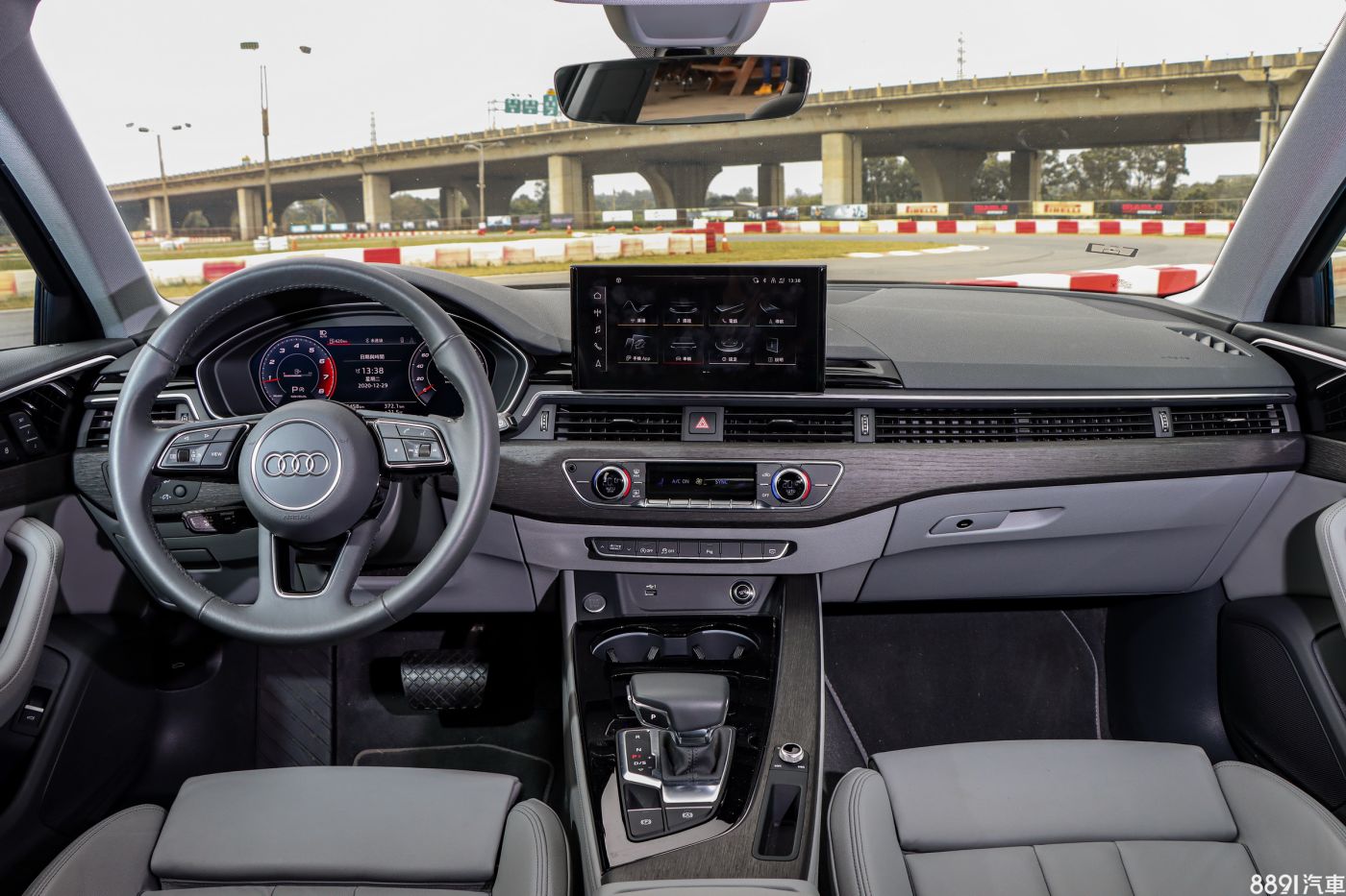 A4 Avant內裝架構大抵維持與小改款前相同,最具特色的部分莫過於副駕駛座前方那一整排出風口設計。小改款後最大變革在於將舊有多媒體系統升級成新介面,不僅螢幕尺寸加大至10.1吋,也改採觸控操作,因而將原本設置於排檔座前方的旋鈕及快捷鍵一併移除,設計更簡潔。