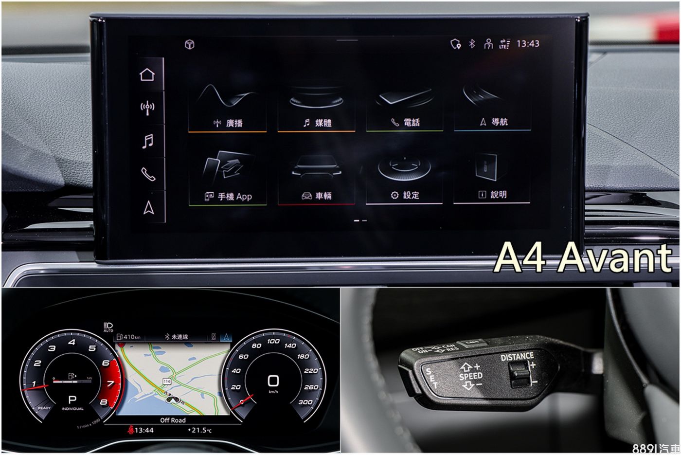全車系都將12.3吋數位儀錶及10.1吋MMI多媒體導航系統列為標配,前者論顯示資訊或視覺享受都是豪華品牌中的前段班,後者選單排列經過簡化,操作直覺且反應速度佳,使用上沒有太大困難。至於ACC定速啟閉及距離調整則仍採獨立撥桿,初次使用需熟悉相關功能操作,才方便在行進間設定。