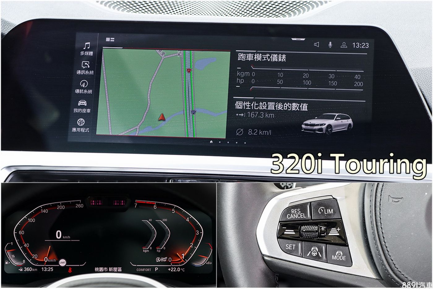 12.3吋數位儀錶及10.25吋iDrive多媒體系統是所有3系列Touring的標配,其中iDrive同時可以觸控或旋鈕操作,一手包辦所有車輛大小設定功能,且另支援同級車款少有的無線Apple CarPlay連接,可搭配手機無線充電板(選配)增添實用性;不過數位儀錶的介面變化及判讀就不如對手豐富。ACC及主動車道維持輔助可直接於方向盤左側按鍵操作,上手度更佳。