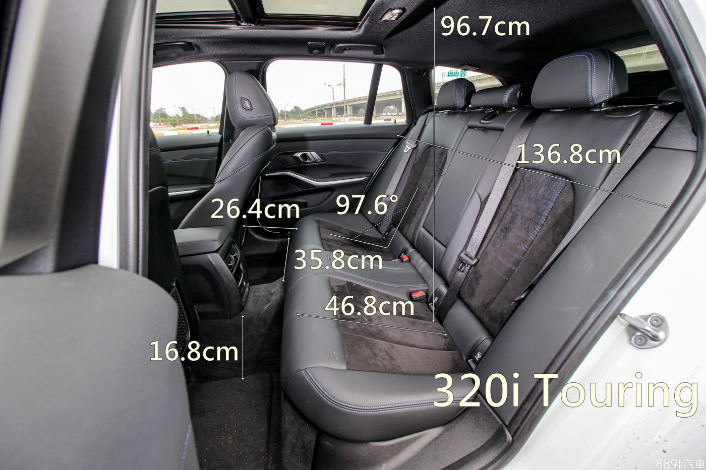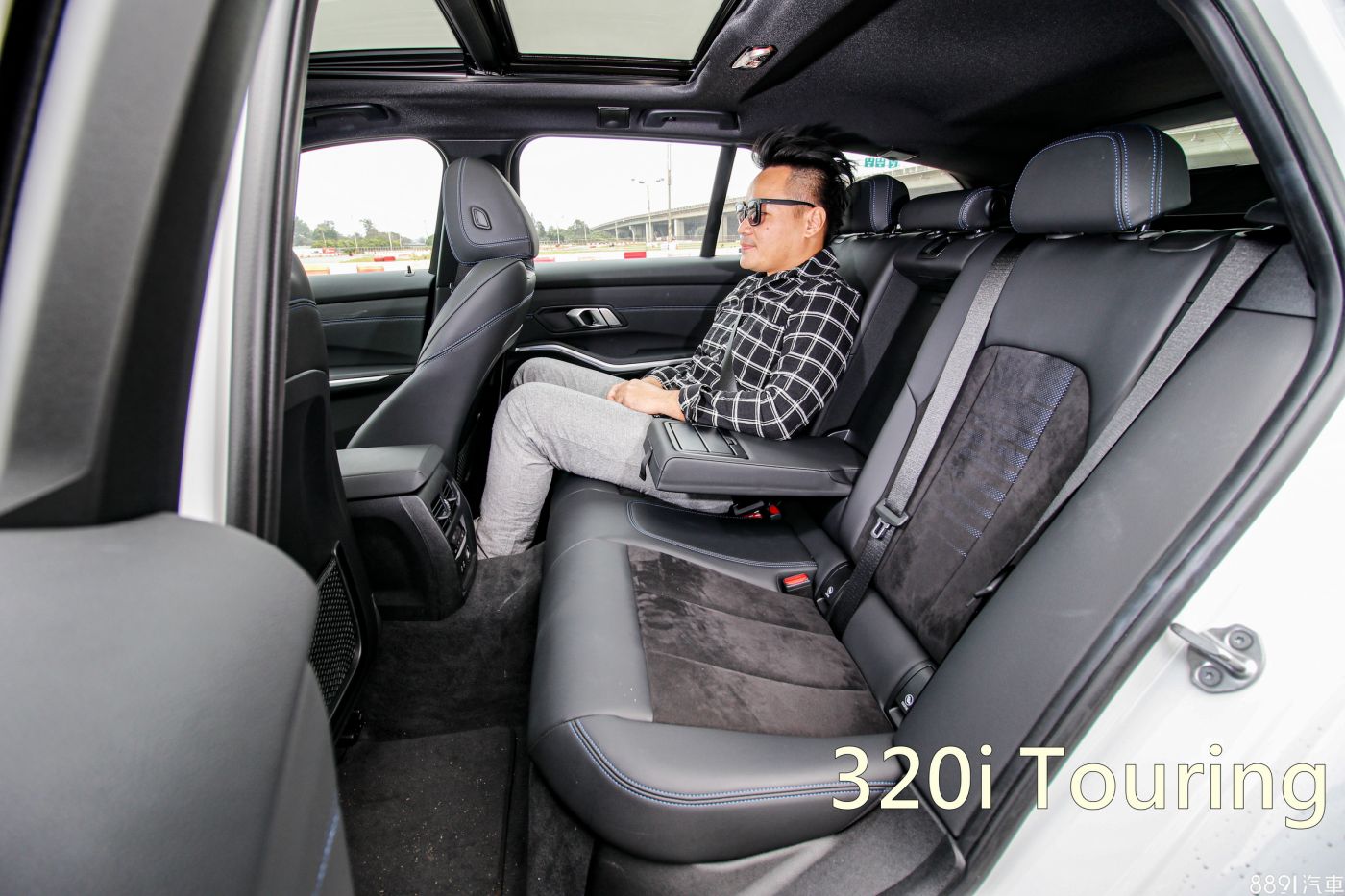 後座椅面長度充足,椅墊高度也夠,且乘坐點微微向下傾斜,使得坐姿比起320i Touring更加符合人體工學,乘坐舒適性不俗。前方出風口設有溫度可獨立調整,但並未配置USB充電孔而僅有12V電源,便利性不及對手。
