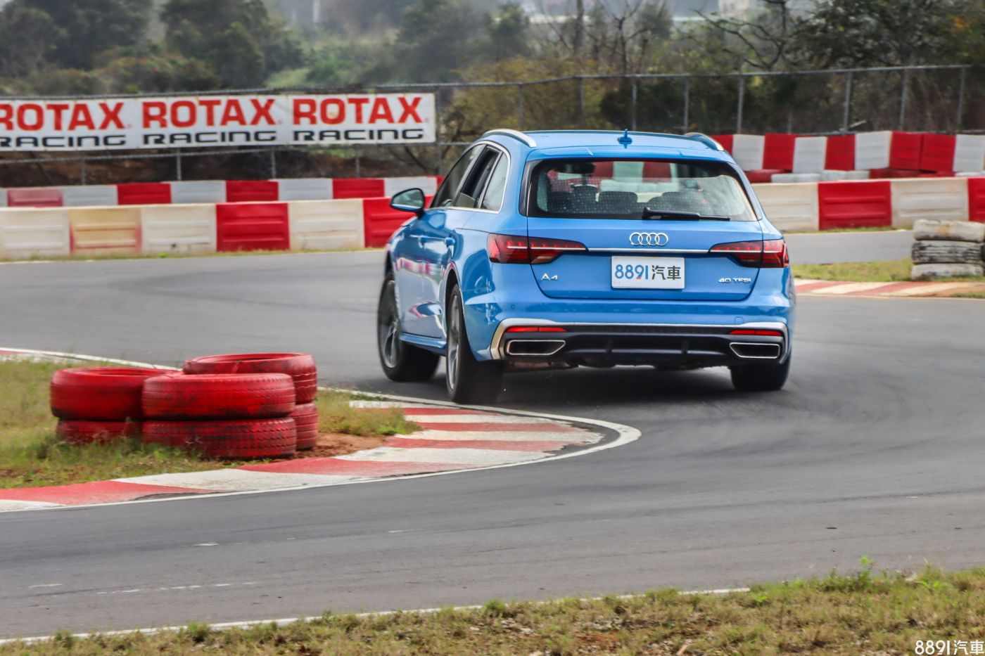 前驅設定的A4 Avant 40 TFSI S line出彎時容易出現空轉、動力流失的情形,在後驅320i Touring身上消失殆盡,加速時重心後移,讓後輪可以更緊貼地面,動力忠實的轉換成速度,展現了後驅優勢,同時車尾穩定受控,不因後驅而有明顯過度轉向情形,可惜的是,米其林PS4配胎並沒有展現出高一層級的側向抓地力,加上320i Touring動力略小一點,使得最後單圈成績為45.9秒,比對手略慢0.3秒。
