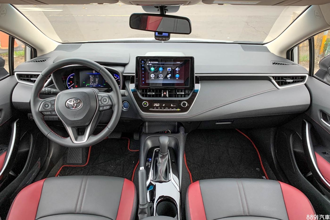 內裝多處用紅黑雙色設計強調運動氛圍,我認為相較於Altis其他車型中規中矩的風格更具特色。從車門扶手、座椅、排檔桿頭到方向盤都是以皮革包覆,儀表台則由皮質與軟質塑料搭配,整體質感對得起它的車價。