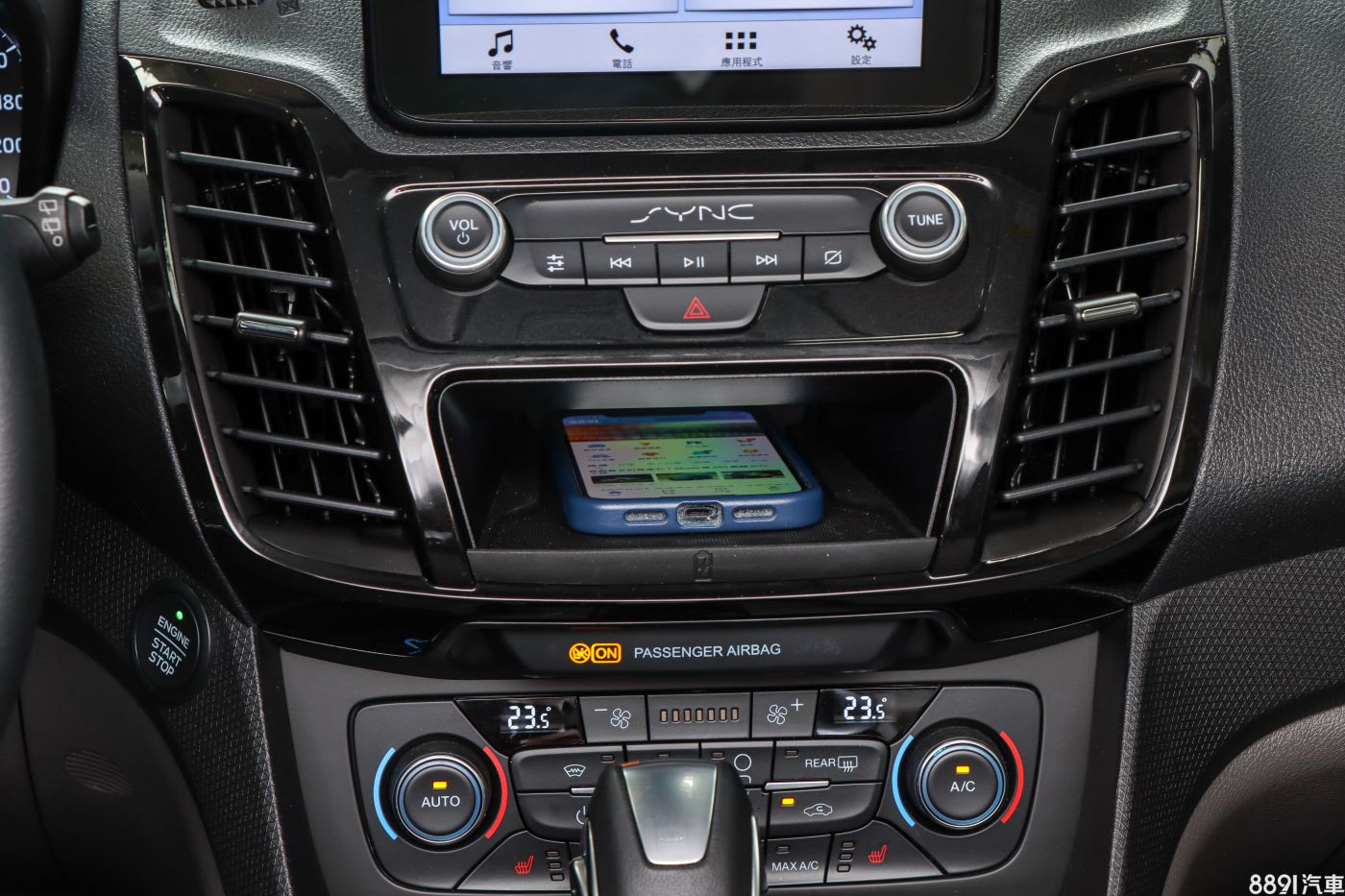 頂規獨享QI無線充電座,設在螢幕下方拿取高度順手,但Apple CarPlay仍是「有線」連接,無法達到真無線使用環境,小小的美中不足。