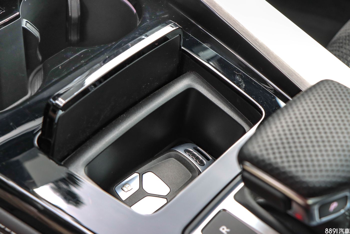 搭配車載系統的更新,新A5取消了原本設置於排檔座前方的旋鈕及按鍵模組,同處改為附蓋置物盒,便於放置鑰匙或零錢等小物,至於排檔座旁的音響旋鈕則未移除,為選曲及音量控制保留直覺性的操作感。