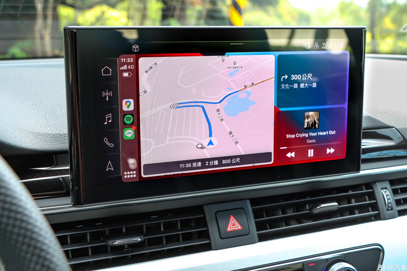 觸控螢幕規格從小改前的8.3吋升級至10.1吋,列全車系標配,內載MMI Plus新版系統,介面較舊版簡潔,並新增無線Apple CarPlay,可惜無線充電座卻需以1.6萬選配,以近250萬元身價來說小有遺憾。