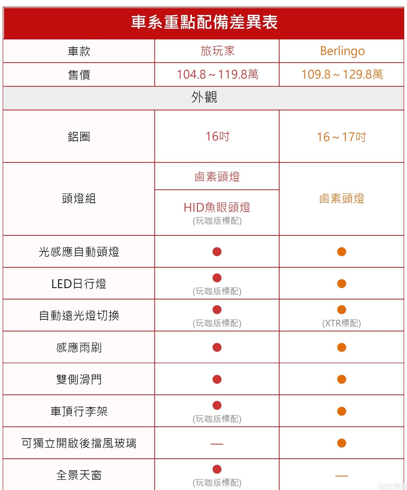 主力販售車型便宜10來萬的旅玩家看來「俗擱大碗」,還是價錢高一點的Berlingo配備更讓人滿意呢?