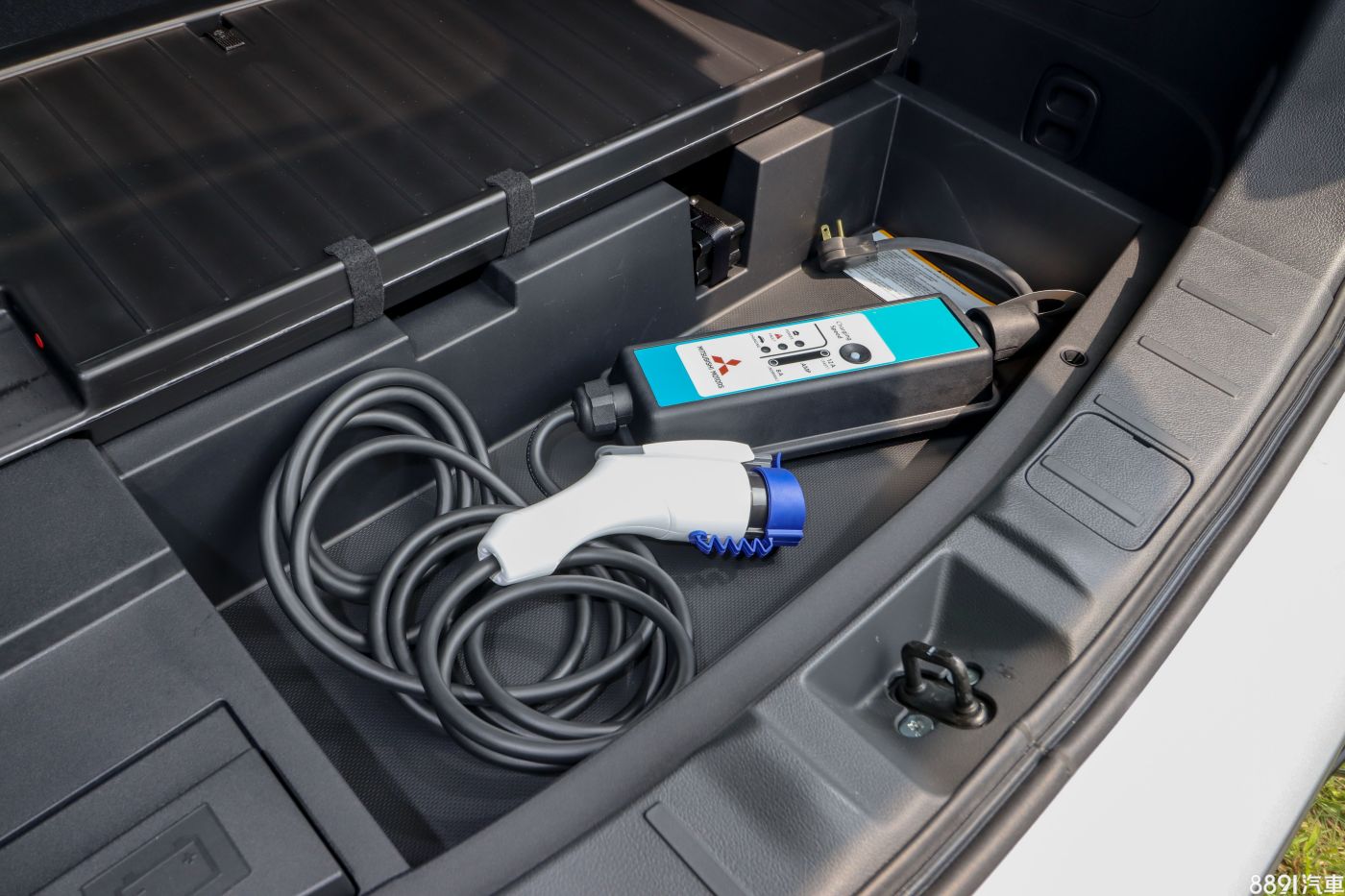 為方便充電所需,Outlander PHEV隨車標配110V充電纜線,可收納於尾廂底板下方之置物槽內,車主並能使用110V一般家用三孔插座來充電。