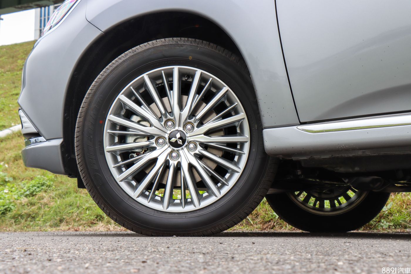 Outlander PHEV標配18吋多輻式鋁圈,搭配225/55 R18的橫濱BluEarth E70胎款,是以滾動阻力低和行駛噪音小為主打的休旅用胎,其兼具節能性與靜肅性的特色,用在油電Outlander上相當適切。