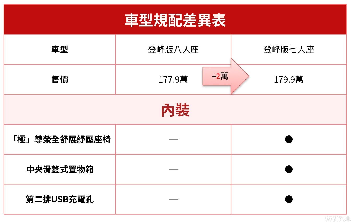 嚴格說起來,Odyssey也不過就「卓越版」與「登峰版」兩款車型,十多萬的價差中有什麼值得注意的地方?為什麼我們最推薦頂規登峰板七人座?