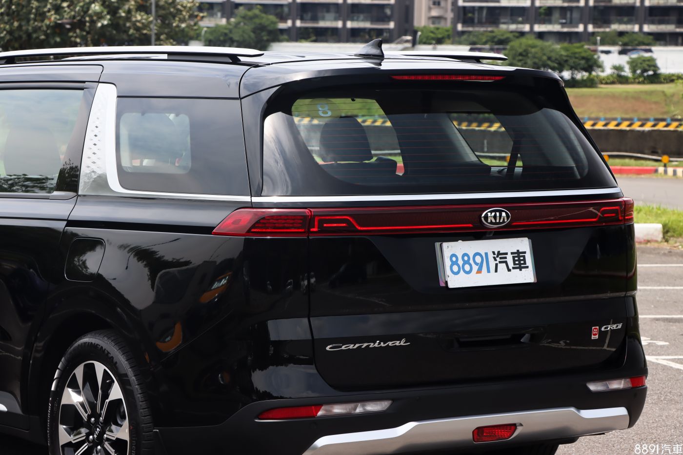 在尊貴型以上加入「尊爵奢華外觀套件」,最明顯的特徵就是在C柱多出大面積鍍鉻飾板,於水箱護罩、側裙、也能見到鍍鉻元素,能有效增加豪華感受。這次Carnival車色選擇不多,除了本次試駕的極光黑車色外,就只剩珍珠白、星耀藍能選,都屬穩重路線。