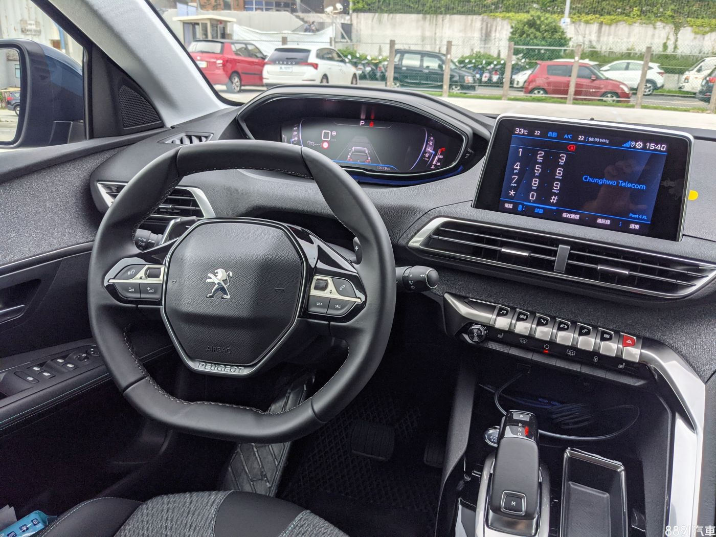 說了那麼久,終於要來看到車子的內部了,不是因為內裝不重要,而是因為這台獅子的外型實在是讓我太滿意了啊!駕駛座充滿著既前衛又帶著濃厚科技感的造型設計,我想就算開了10年以後,以3008這樣的內裝設計應該也不會太過時。方向盤右側的線傳式排檔桿以及上方的功能按鈕,就如同飛機駕駛艙一樣,讓我這個飛機迷又更加地著迷,短短幾個月就已經變成獅粉。不過中控台螢幕只有8吋,據說全亞洲的規格都是這樣的,雖然8吋對我來說算是已經足夠,但看在其他車款的螢幕都有越做越大的情況下,還是難免讓人覺得有點小氣。