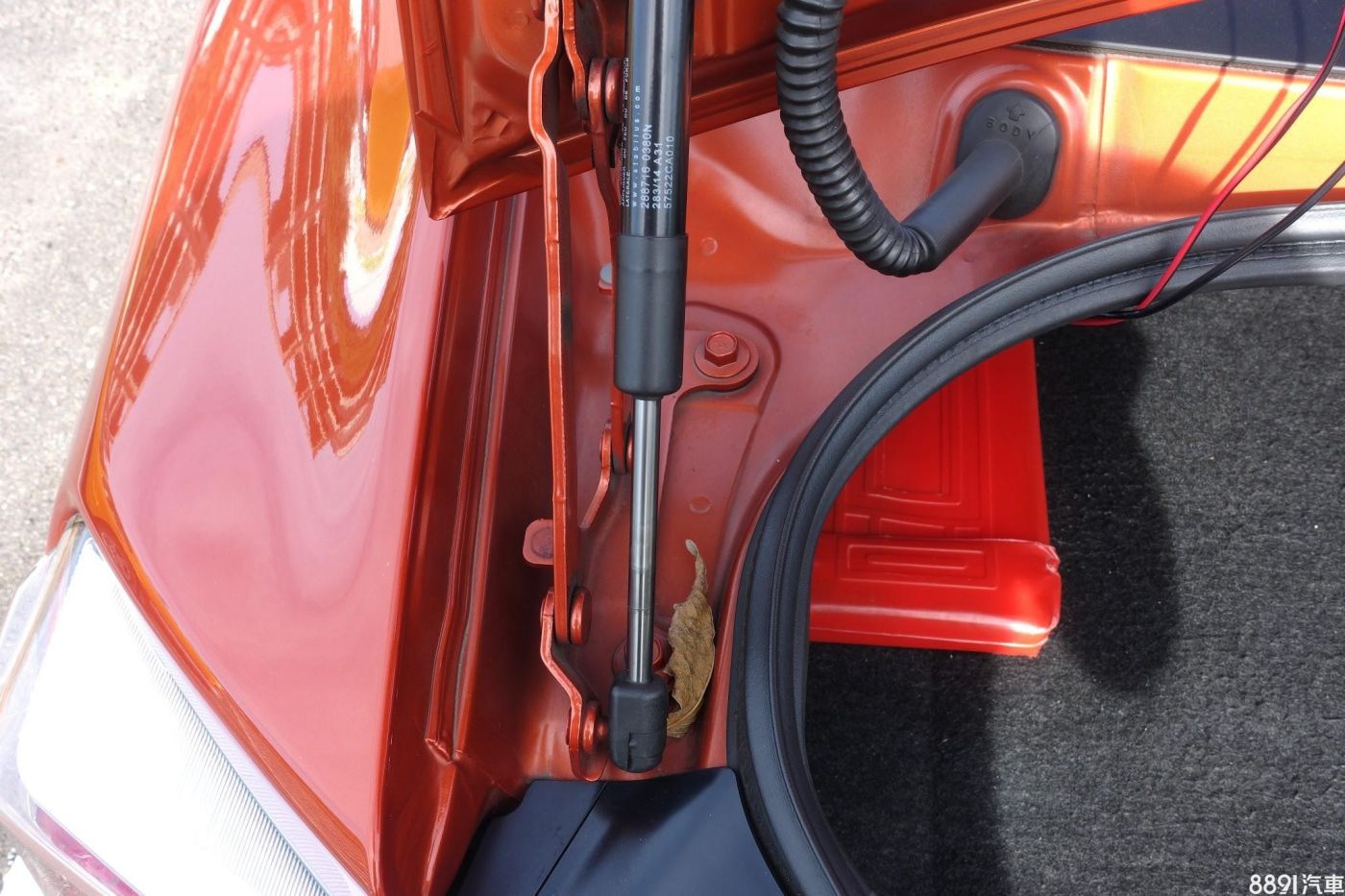 但我這邊不得不特別提出來一個問題,這個後尾廂油壓桿因為是設計在防水膠條之外的地方,因此常常會有落葉堆積,洗車時也都會有泡沫殘留在上面,這點真的是挺惱人的,都要特別注意清潔才行。