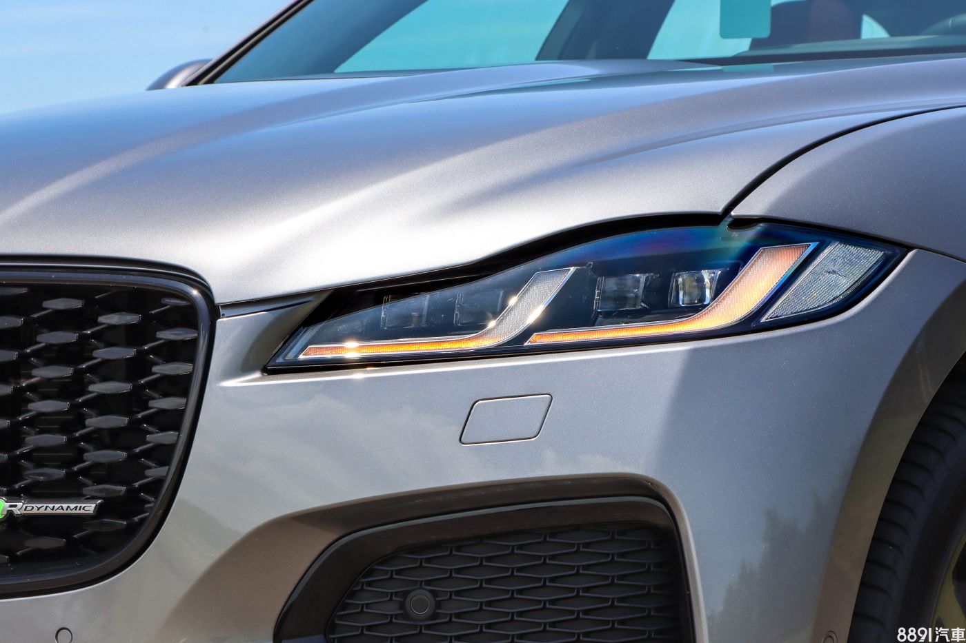 頭燈是F-Pace小改後的另一亮點,跟進I-Pace採用「JJ」造型,該鉤狀燈條整合了日行燈及序列式方向燈的功能。試駕車款則另行加選了「高解析度LED」頭燈,除了造型上單側燈體由雙眼式變成四眼式,並增加自動光形遮蔽功能,選配價6.8萬。