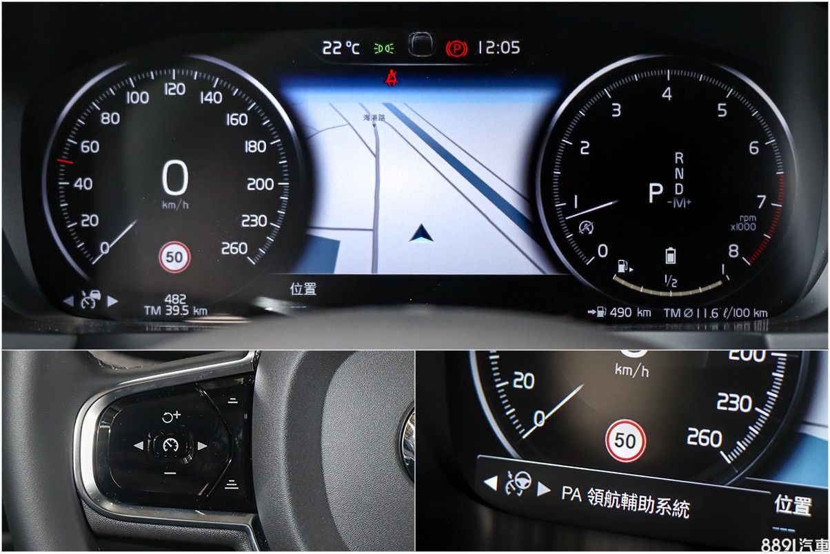 12.3吋數位儀錶與改款前完全相同,僅因應48V微油電動力在轉速錶下方增加電池電量顯示,此外一如Volvo給人的安全形象,全車系皆將完整的主被動安全輔助列為標準配備,包含達Level 2等級的PA領航輔助系統。