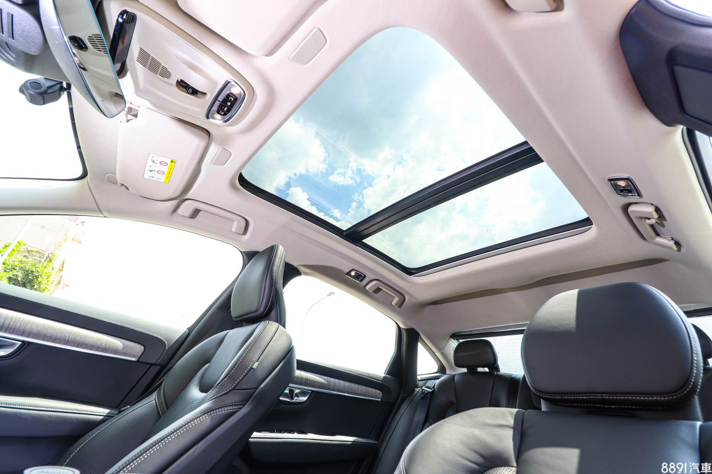 S90全車系將全景天窗列為標準配備,是此級距房車少見的配置,天窗遮陽簾材質也頗為厚實,帶有一定隔音隔熱效果,大尺寸天窗尤其帶給後座開闊的座艙氛圍。