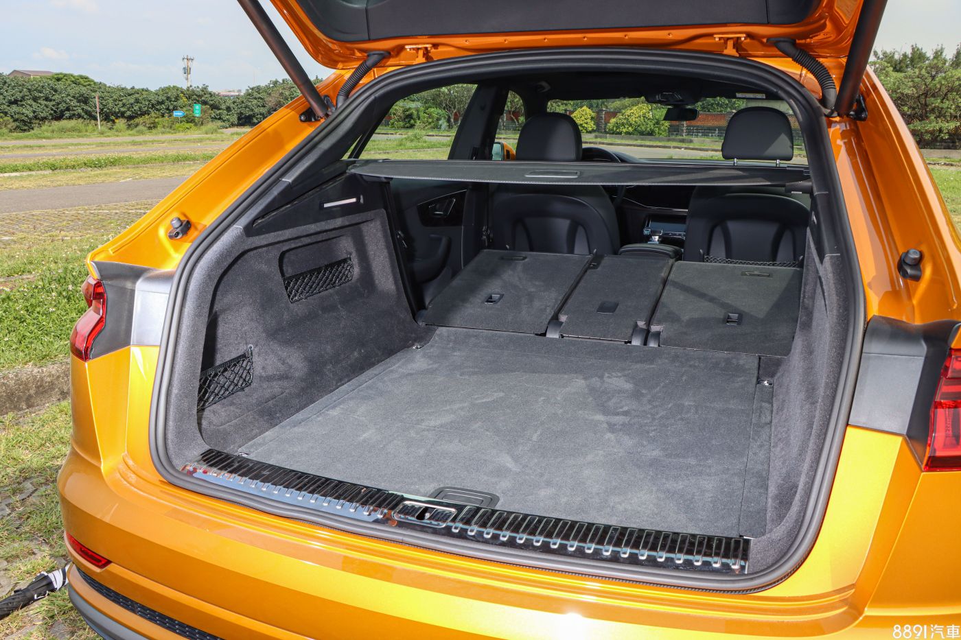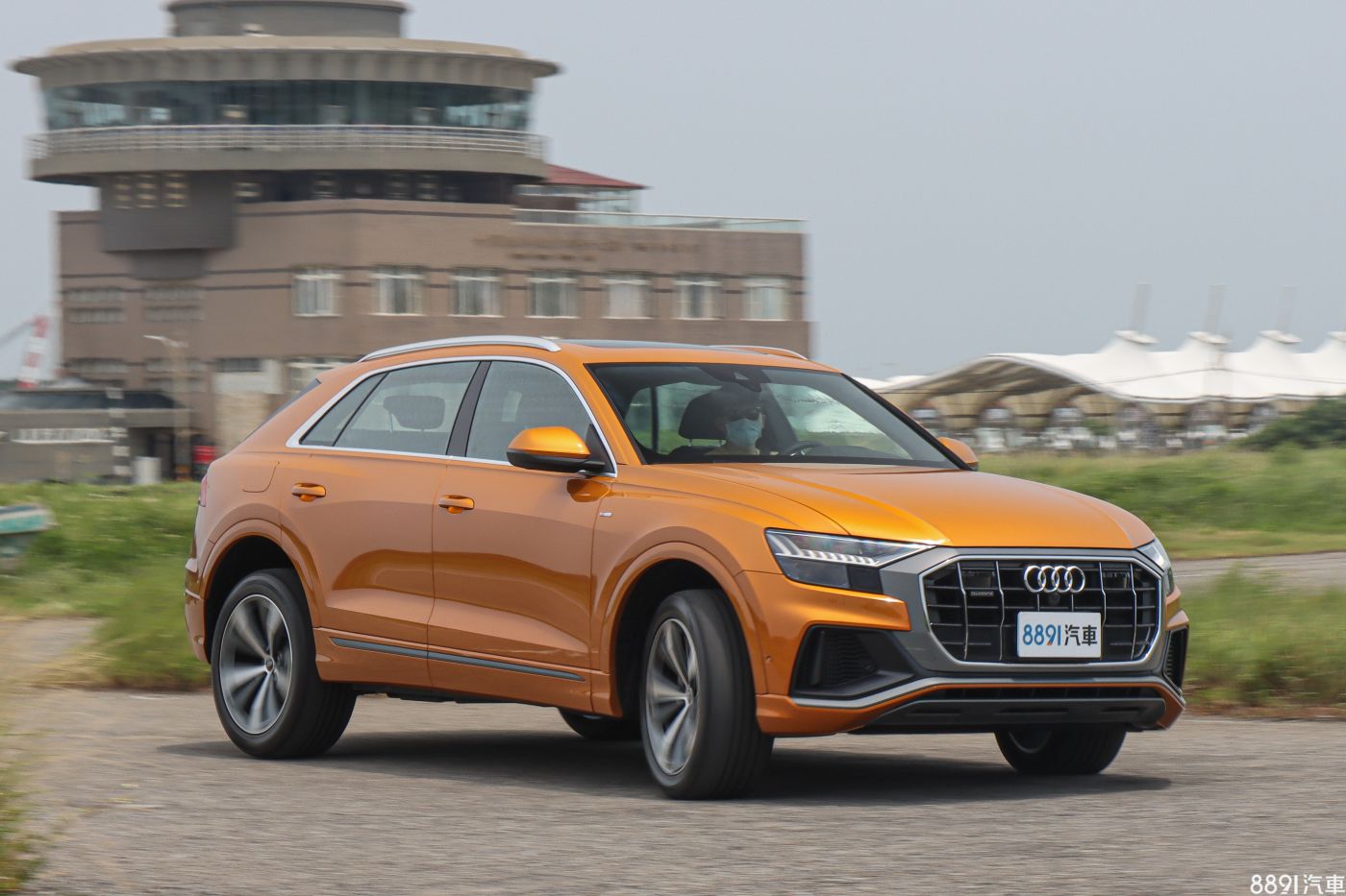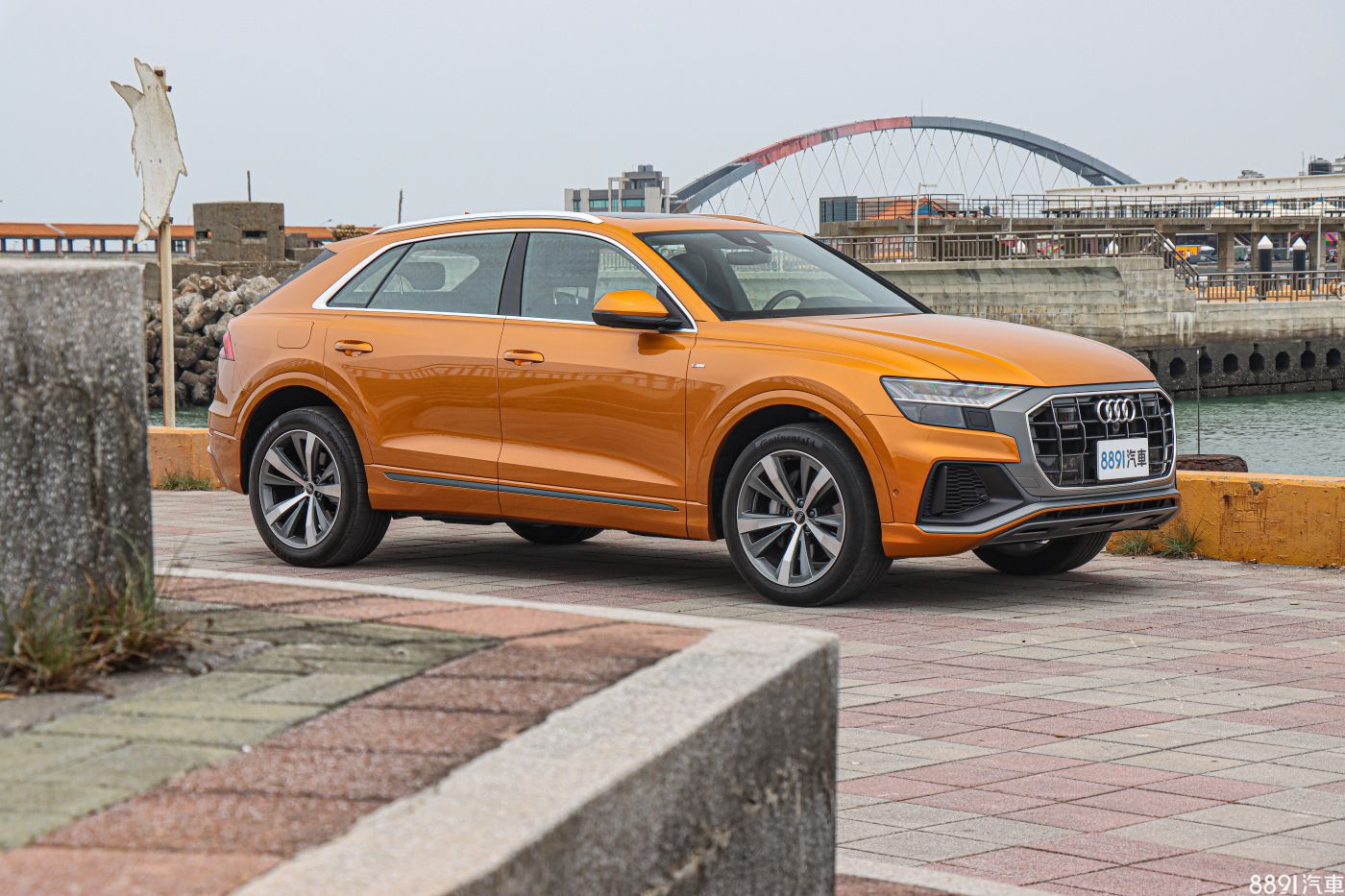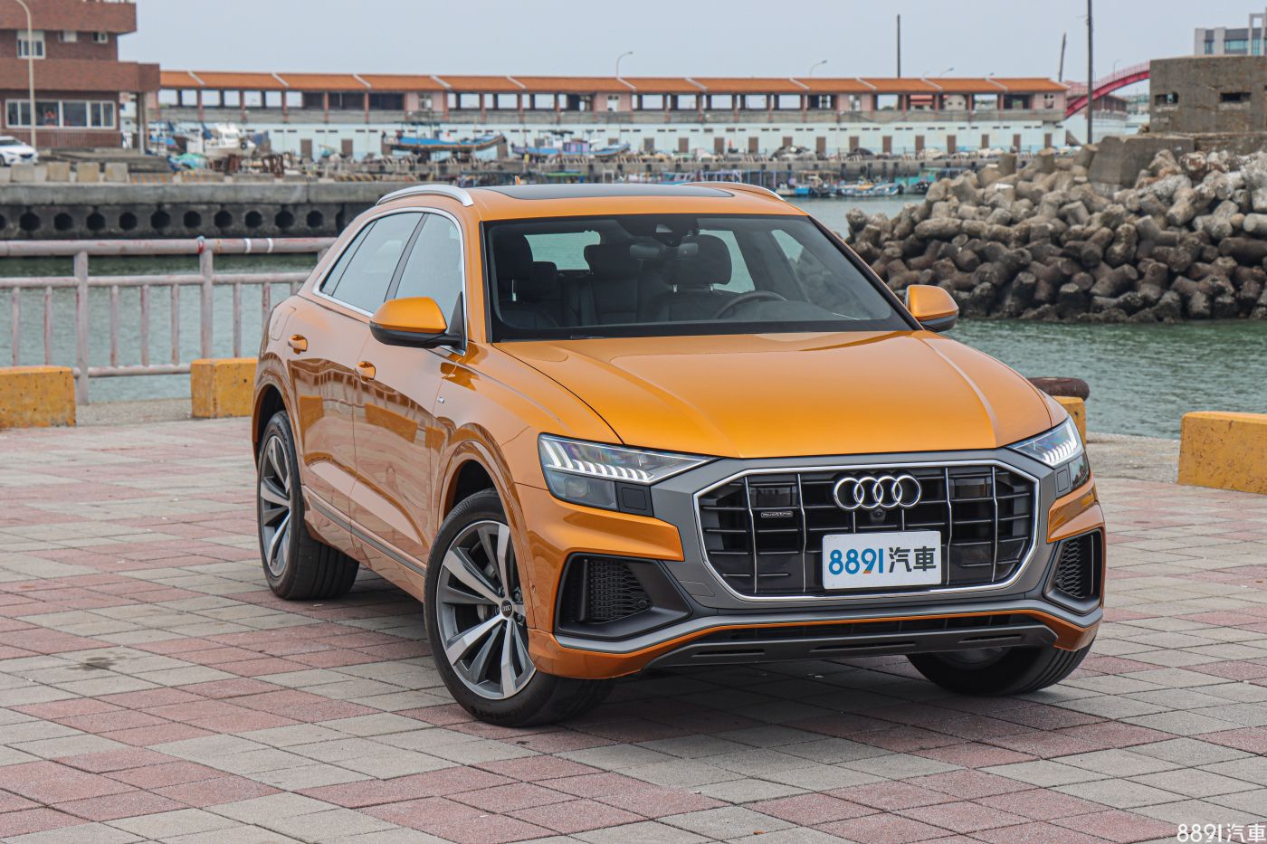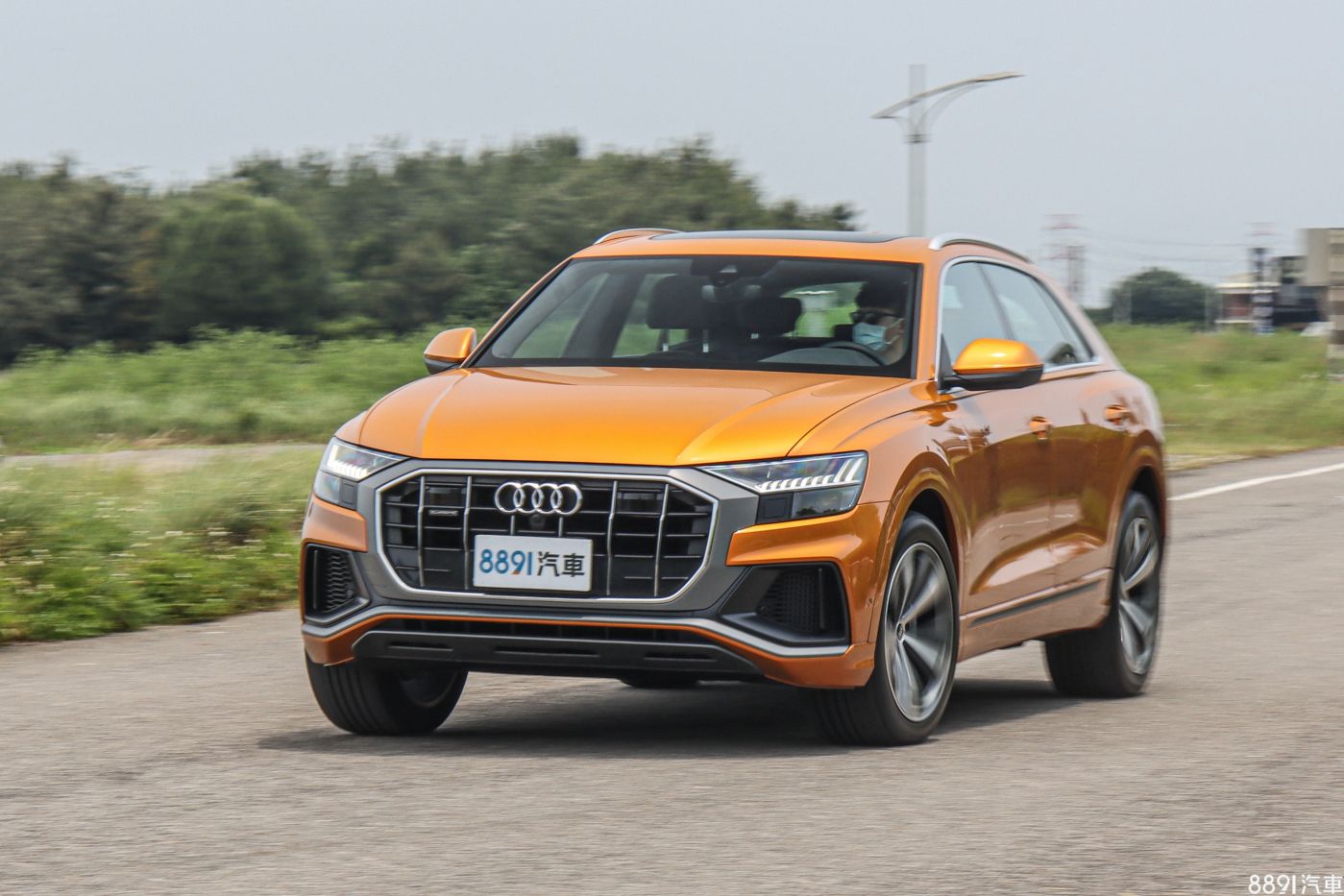 由於Q8海外上市好一陣子,才終於登台開賣,讓原本期待的「新鮮感」有些打折,但初見實車後,眼球還是不停對著Q8上下打量,上述疑慮也被拋到腦後。外觀最引人注目的便是粗壯飾條包圍的八角型水箱護罩,搭配兩側大面積氣壩,車頭望去霸氣十足,加上試駕車的「龍焰橘」車色,想低調都很難,一整天下來,行人的注目禮不曾少過!