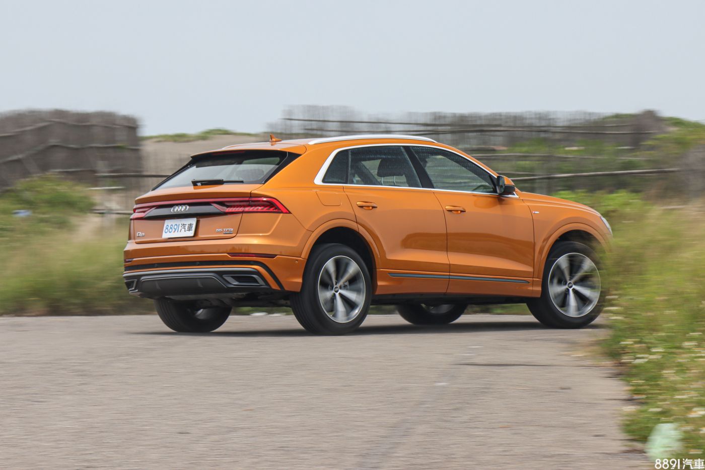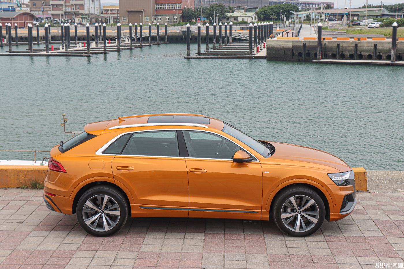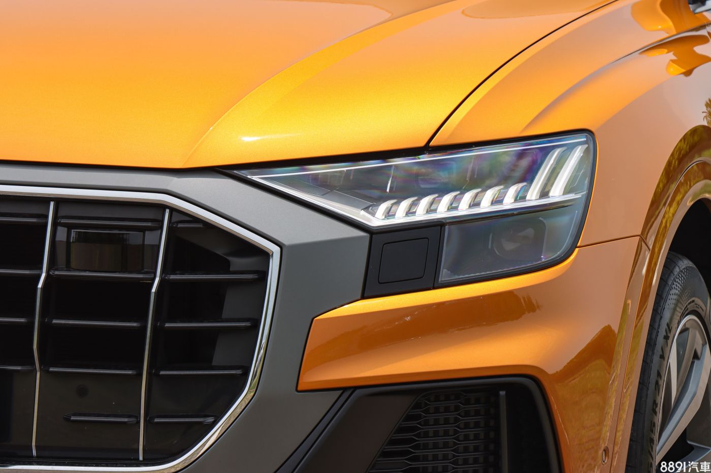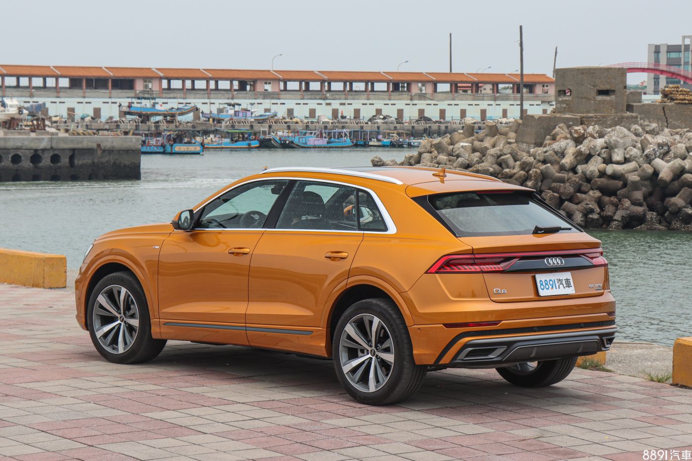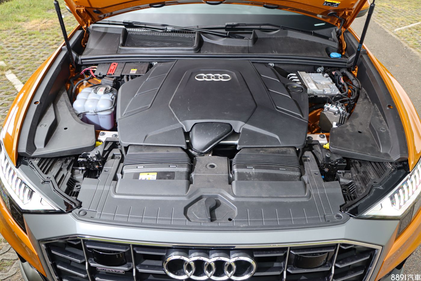 由於Q8海外上市好一陣子,才終於登台開賣,讓原本期待的「新鮮感」有些打折,但初見實車後,眼球還是不停對著Q8上下打量,上述疑慮也被拋到腦後。外觀最引人注目的便是粗壯飾條包圍的八角型水箱護罩,搭配兩側大面積氣壩,車頭望去霸氣十足,加上試駕車的「龍焰橘」車色,想低調都很難,一整天下來,行人的注目禮不曾少過!