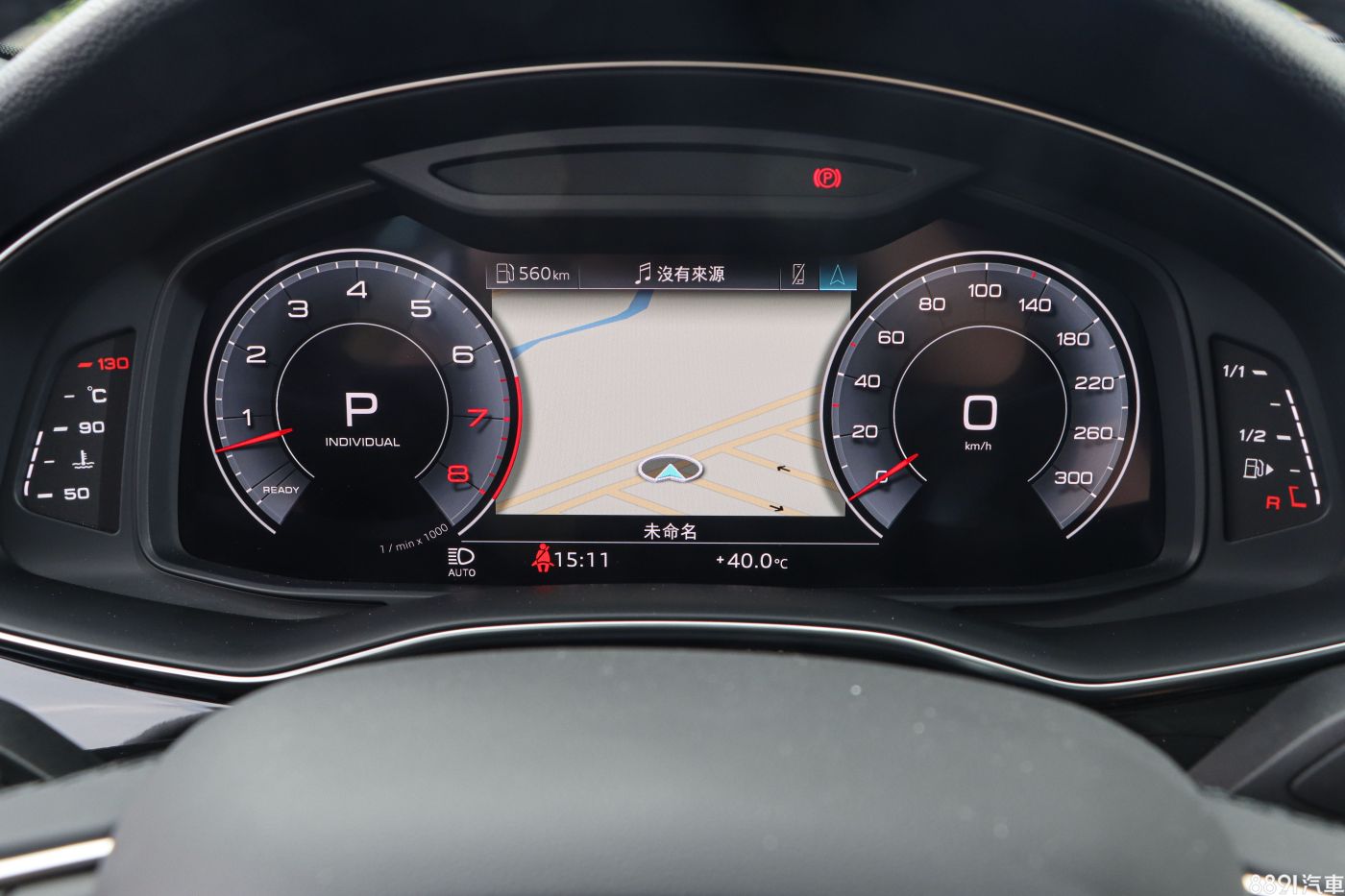 Q8標配12.3吋全數位虛擬駕駛座艙,透過方向盤左側的View鍵,便可快速選擇儀錶模式,切換畫面時不卡頓,圖示邏輯也清楚好懂,亦可全螢幕投放原廠導航,使用上相當就手,唯獨少了抬頭顯示器從旁輔佐,便利性上略顯不足。