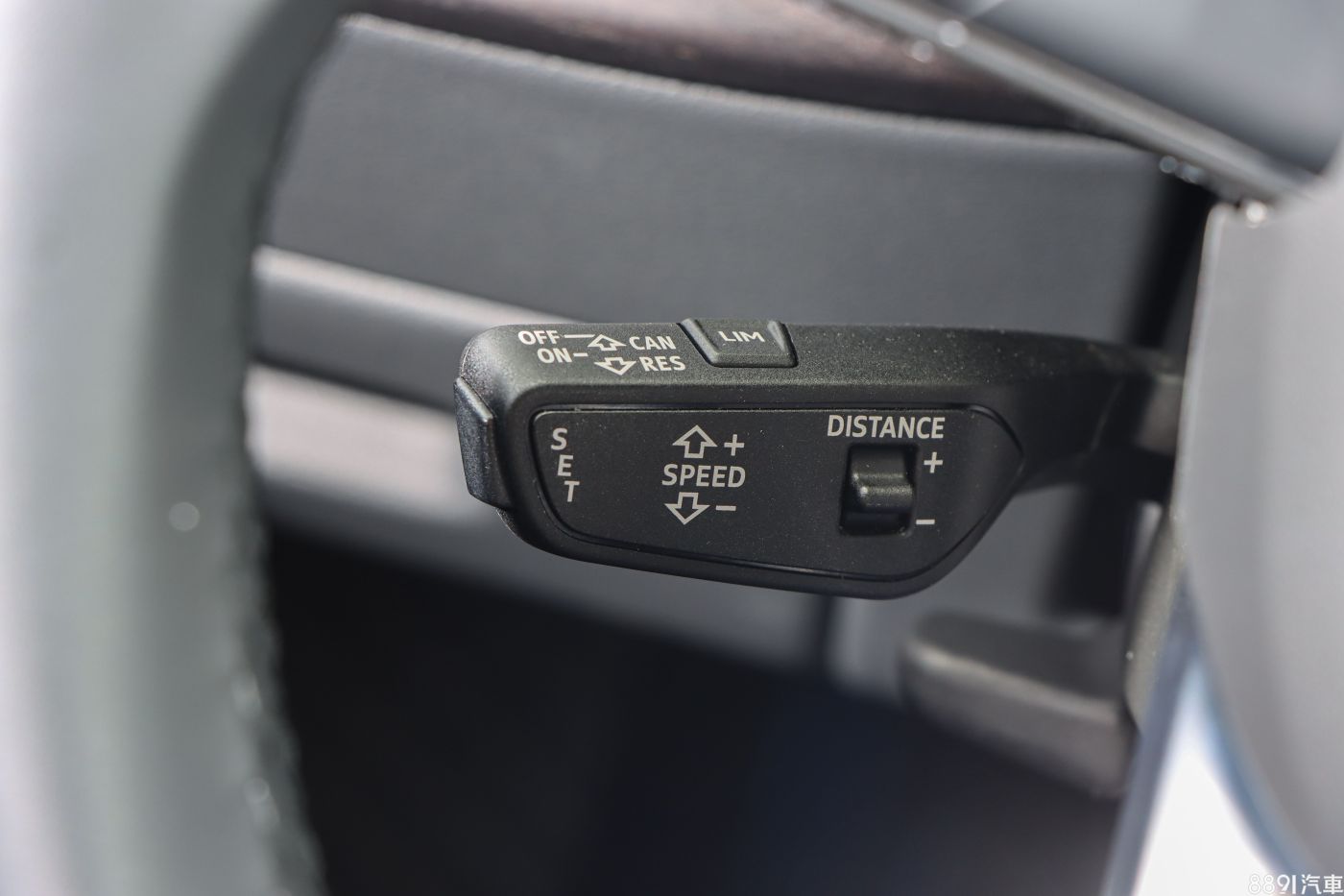 真皮包覆的三輻式方向盤,握持的手感不錯,不過配置卻很一般,沒有跟進新世代產品,採用電容式觸控按鍵,這點可以理解,但上下調整維持手動就有些說不過去,難以匹配旗艦產品的定位。