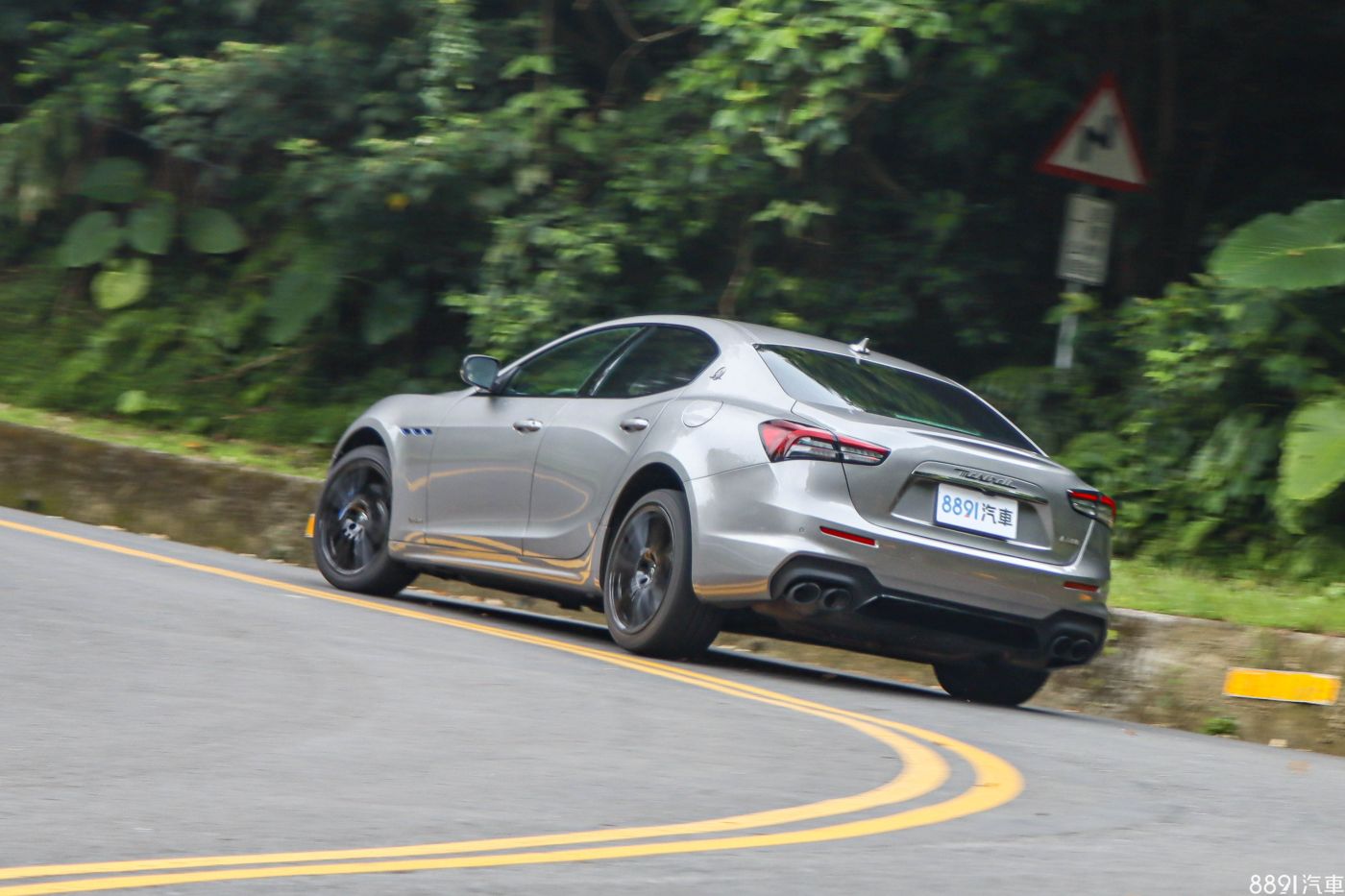 Ghibli車長近5米,頗大,但山路上奔馳倒是很靈活受控,底盤方面有許多幫助操控的利器,除了後軸的機械式LSD限滑差速器、Skyhook電子懸吊系統,寬達前245mm、後285mm的P-Zero跑胎也功不可沒,不是太誇張的探究極限,幾乎不太出現輪胎的尖叫聲,此外,四缸動力和V6比起來,車頭重量較輕,相對有助於整體配種,提供穩定又服貼的操控反應。