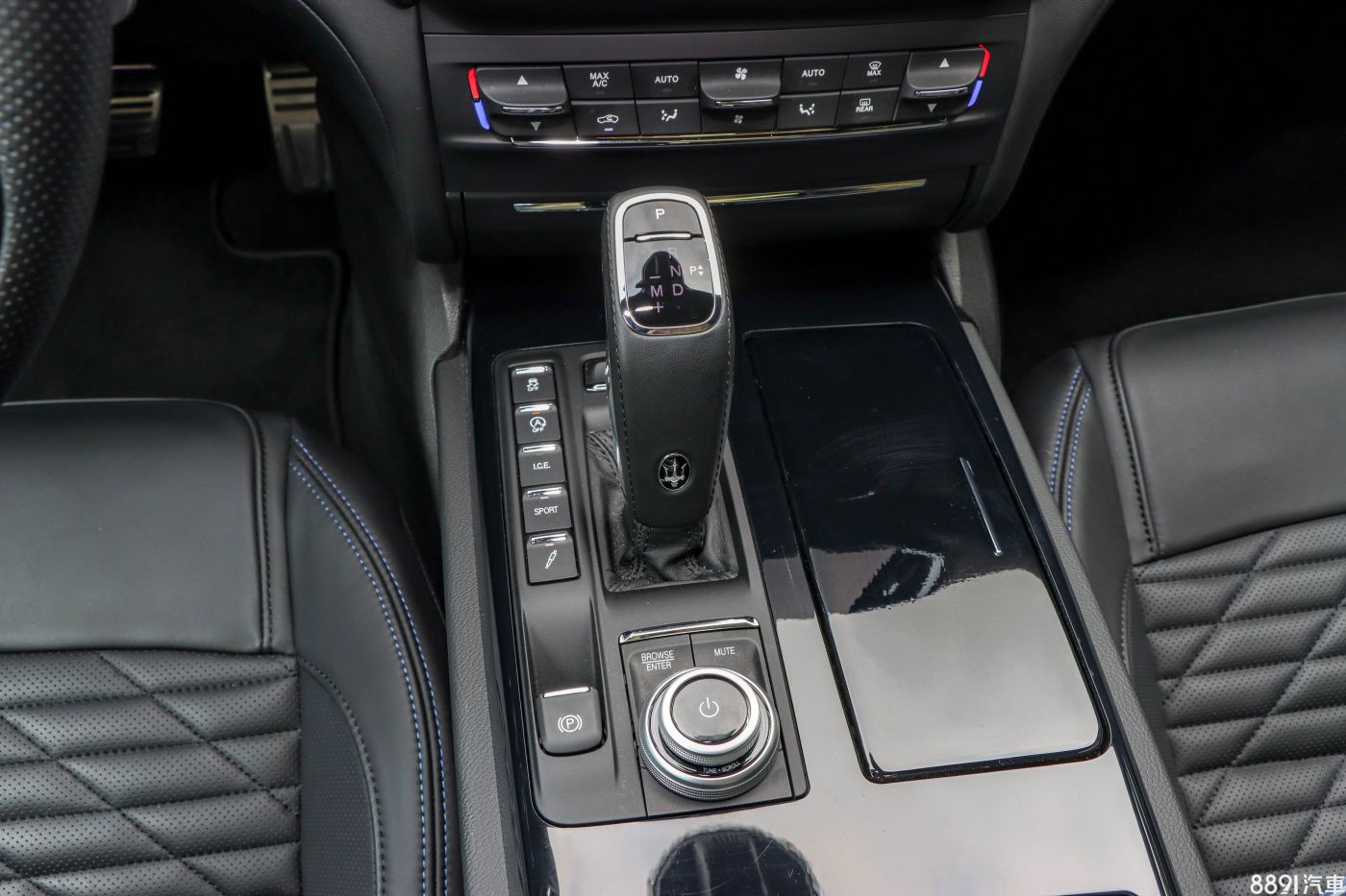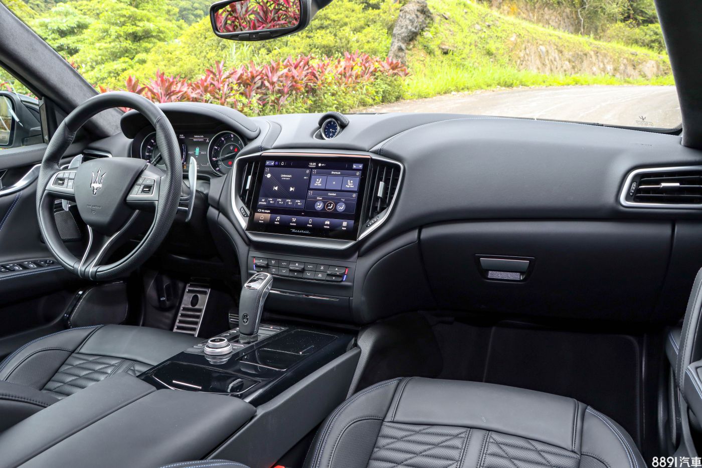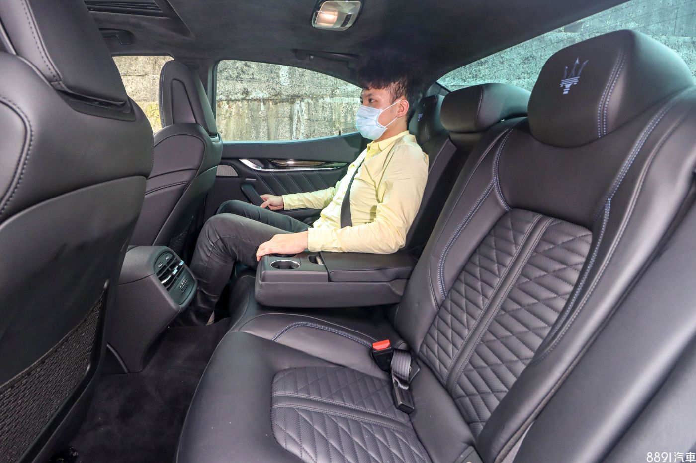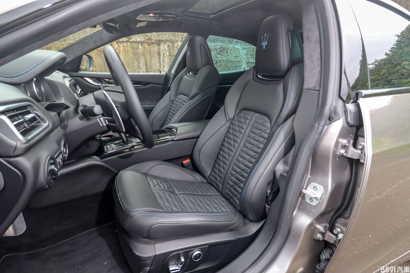 雙前座具備12向電動調整和2組記憶,試駕車選配39萬元的Pieno Fiore內裝套件之後,升級為材質細緻的天然皮革,中間多了細緻的紋路設計,並追加通風與加熱功能,整體設定為舒適取向,腰部側向包覆面對較激烈的操駕情況有些不夠,另外值得一提的是,座椅頭枕的三叉戟刺繡要另外花3萬元選配,而且前提是要先選配頂級以上的皮革樣式。