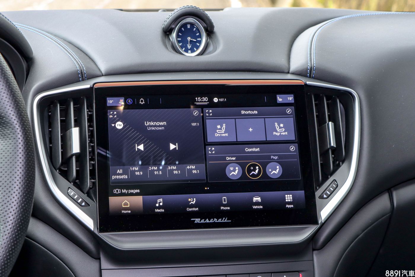 小改款Ghibli中央資訊幕從原本的8.4吋換成10.1吋新系統,GranSport車型標配手機無線充電座,使用體驗更現代化,內裝設計維持古典風味,觸手可及幾乎是柔軟的皮革材質,中控台上方的精美時鐘也多了畫龍點睛的作用。