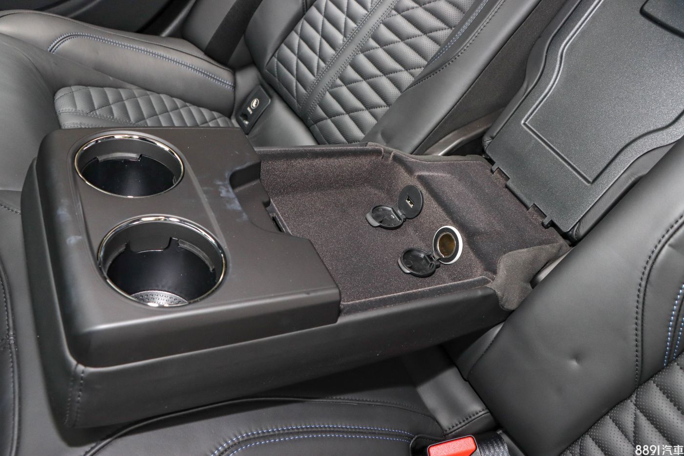 後座的USB介面位於扶手內,旁邊還有一組12V插座。