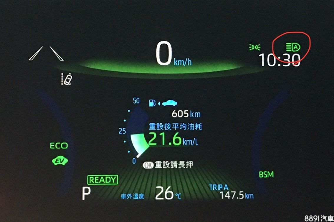 首先是從8891公司取車後到加油站約10公里的純市區路程,Altis GR在市區只要開啟ECO模式並搭配小腳油門控制,就可以達到非常漂亮的油耗表現了。