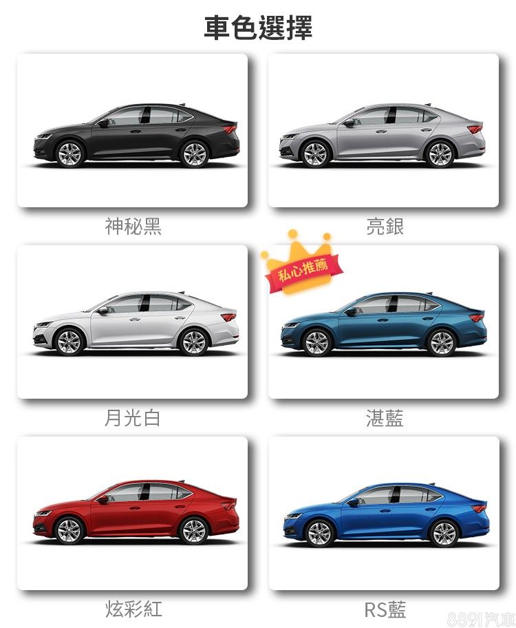 不論Octavia或Octavia Combi,原廠皆提供6種車色可選,包括三款灰階色系,以及湛藍、RS藍及炫彩紅等較搶眼的色彩。其中,湛藍色除了本身較個性化的色調,在光線照射下明暗對比也較為深邃,是筆者私心推薦的選色。