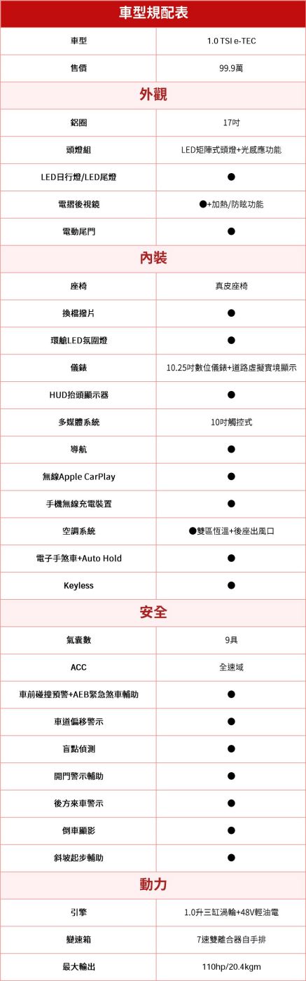 比照Octavia的策略,從1.0升Combi換上1.5升規格,配備差異並沒有太過強烈的吸引力,但仍屬物有所值,因此推薦度也以3顆星的「普通推薦」做收。