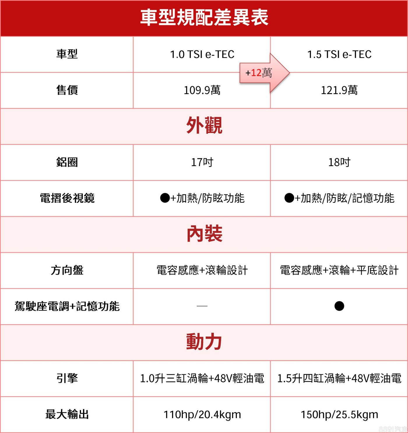 橫跨33萬的五款車型,雖說主要以動力形式來區別,但等級間仍存在著些許差異,不過是否有需要直上頂規大滿配呢?