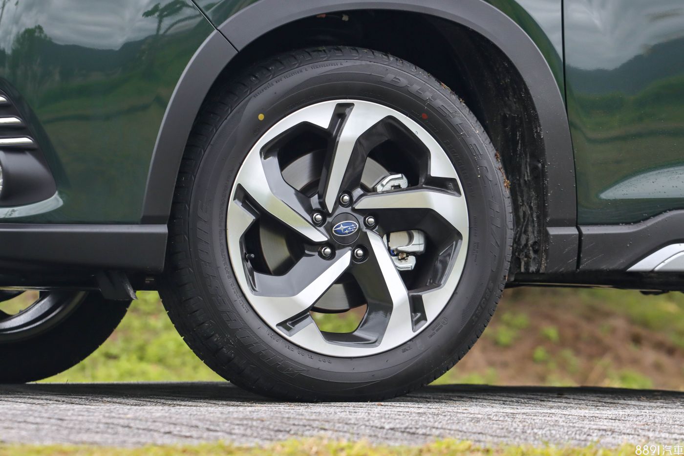 頂規搭載18吋鋁圈,造型頗有運動氣息,配胎為225/55R18的普利司通Dueler H/P Sport,訴求抓地力表現,是為運動型休旅車而生的胎款,配上Forester的動力表現絕對綽綽有餘。