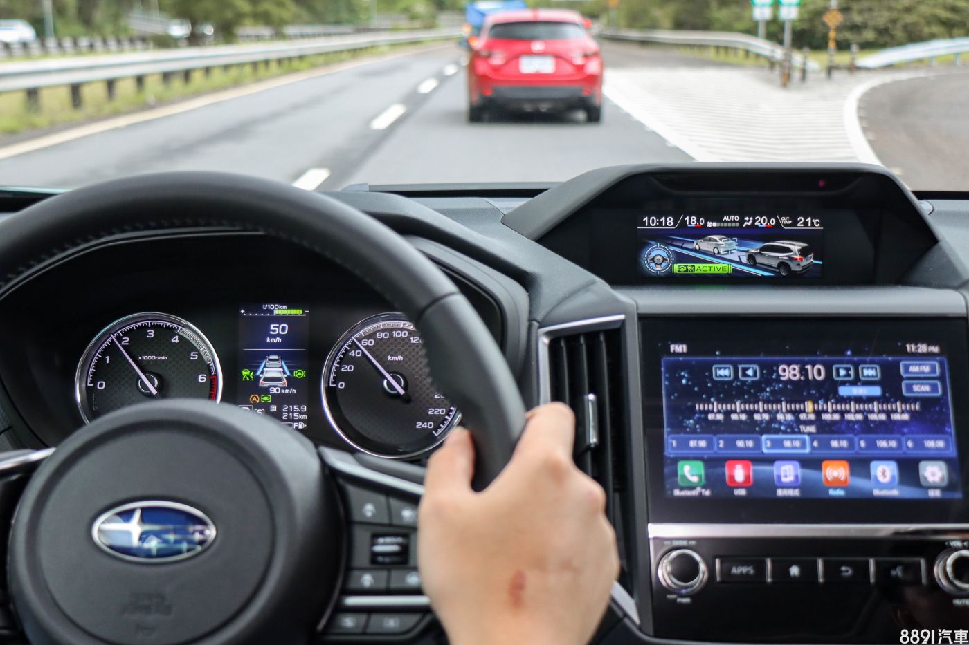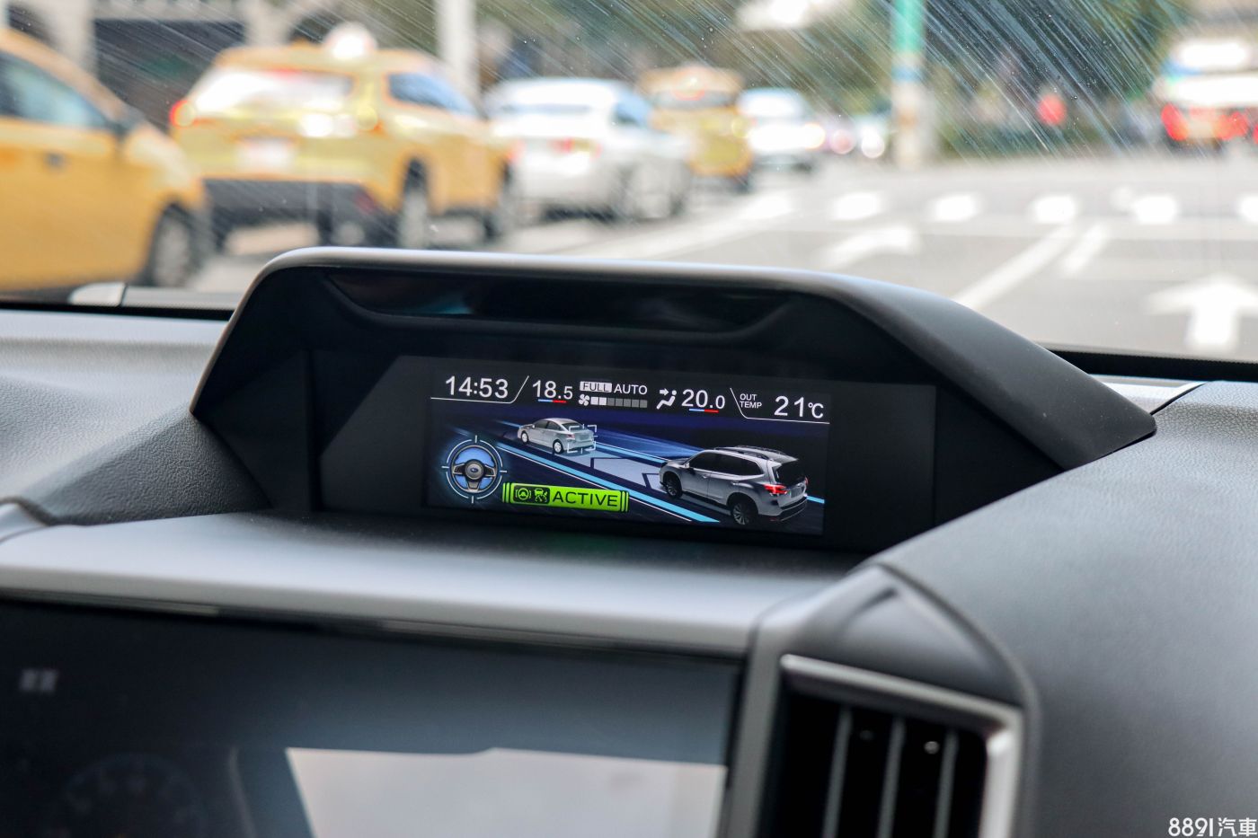 Forester的ACC主動跟車在0~160km/h可做動,駕駛也能設定Dynamic、Standard、Comfort、Eco四種跟車模式,主要關乎自動加速積極度,越往運動化調整加速越快,跟車距離則有四段可調整。實際測試下有些小缺點,在ACC跟車距離一段情況下,如果前方有車匯入,煞車時機會比預期來得晚,煞車感覺也突兀一些,在距離第二段以上會線性許多。