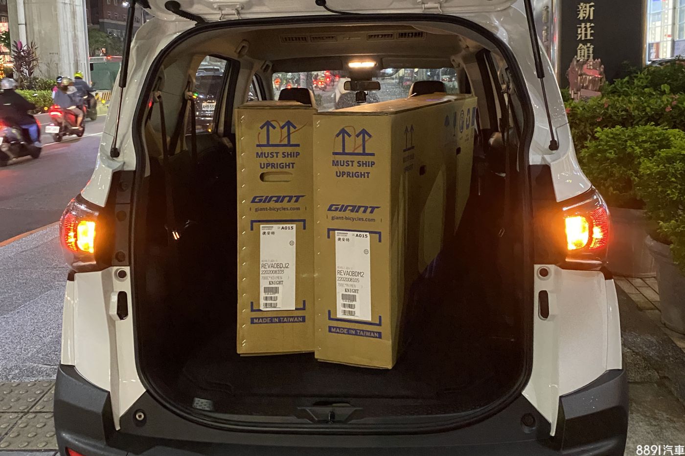 而如果是載一般小紙箱真的是以輕鬆來表示,同時載著大型紙型貨物時(兩台單車約20公斤),實際操駕起來相當輕鬆,但原本面積大的後窗會直接被貨物擋住,故乘載大型物件時需注意空間與視線安排。