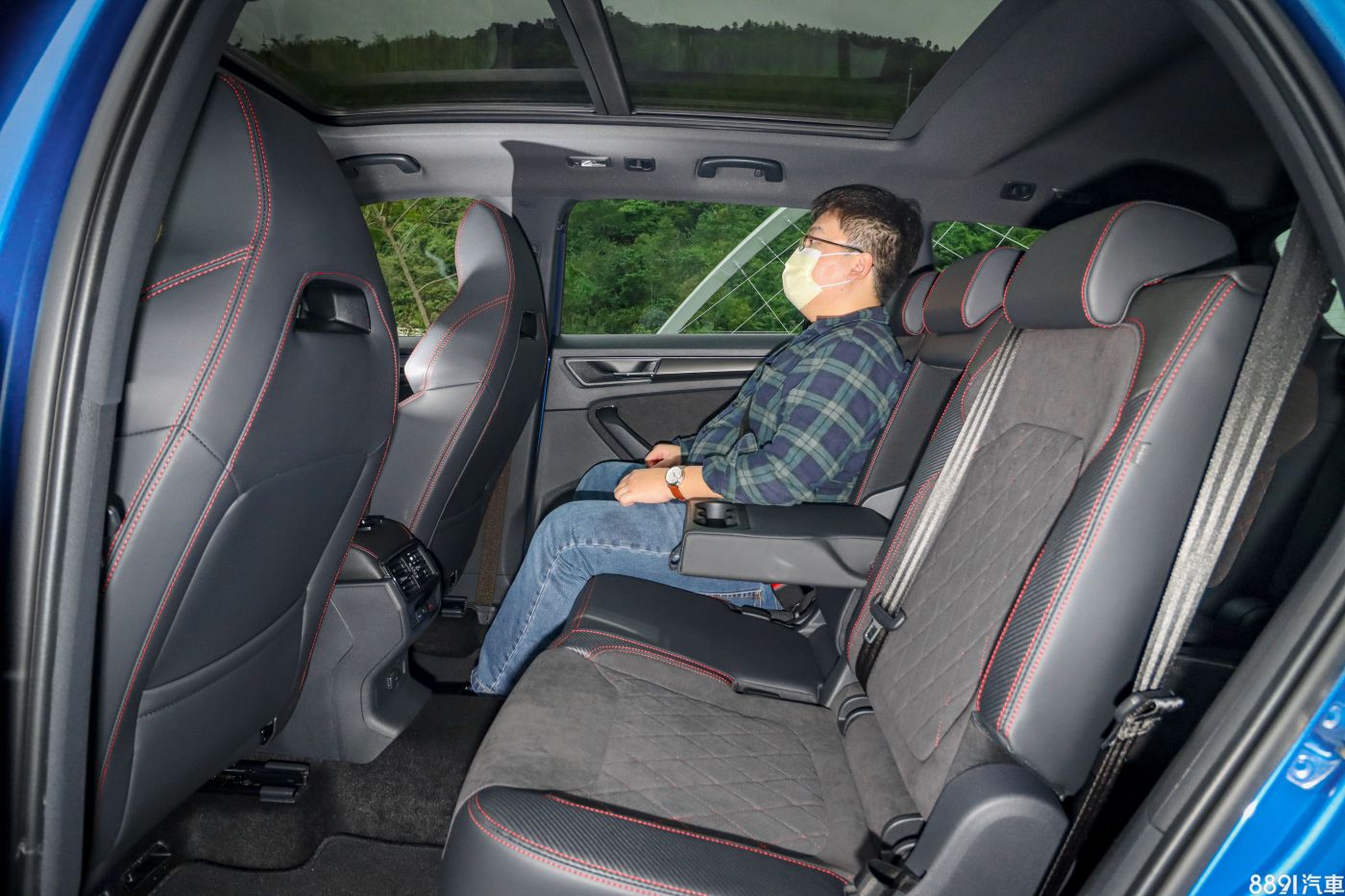 第二排在正常配置下,也有相當不錯的乘坐體驗,不論頭部或膝部空間都十足充分,座椅椅面也略帶立體剪裁,乘坐上足稱舒適,標配的三區恆溫空調也有助提升乘坐品質,唯中央座下方的傳動軸果嶺,總讓人覺得太過高聳了點。