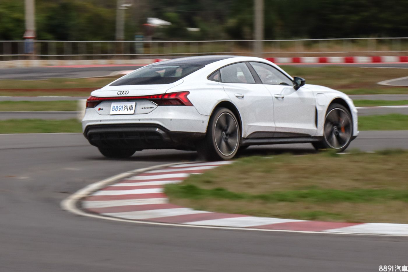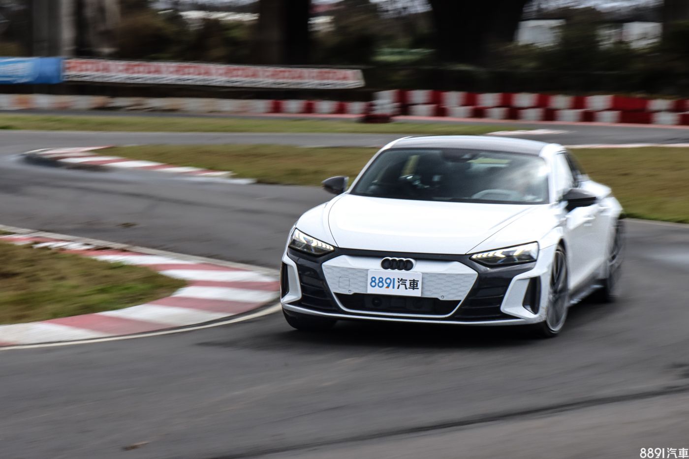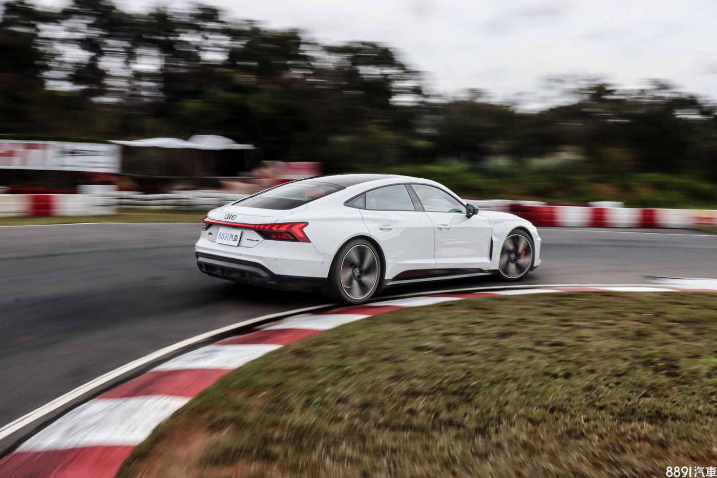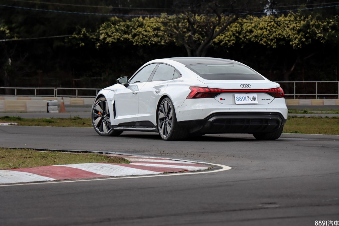 在這麼小的場地裡試過761hp的Taycan Turbo S之後(Taycan Turbo S超測點我),對於RS e-tron GT的598hp馬力也就不太擔憂了(boost模式646hp)。運動模式下,動力釋放雖猛,但線性度還是有幾分近似燃油車,沒有急躁、突兀感,同時前265/35R21、後305/30R21倍耐力P Zero的胎面狀況也不錯,提供優秀的抓地力,讓出彎加速完全不恐懼!