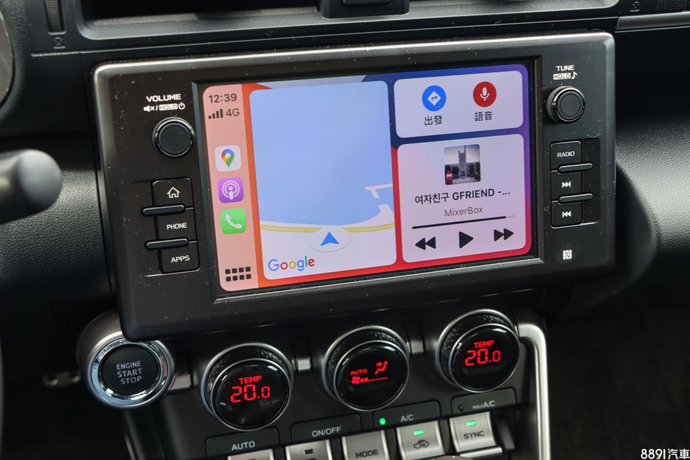 原裝8吋車機功能簡單,畫質表現出色,提供手機有線Apple CarPlay、Android Auto功能,但小缺點是頁面左右滑不太靈敏,畫面稍嫌卡頓。